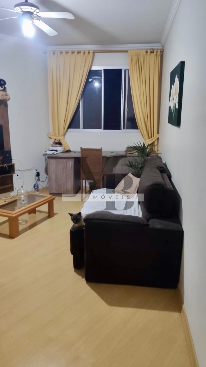 O imóvel tem sala ampla com 2 ambientes, cozinha com armários, área de serviço separada da cozinha, 2 dormitórios, sendo 1 suíte, ambos com móveis planejados, banheiro social e 1 vaga coberta de garagem.