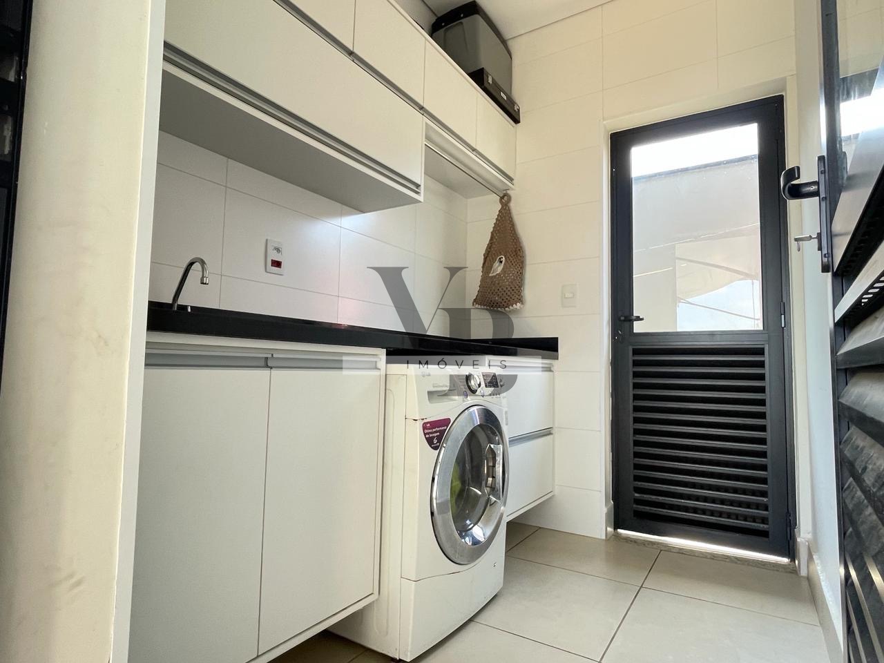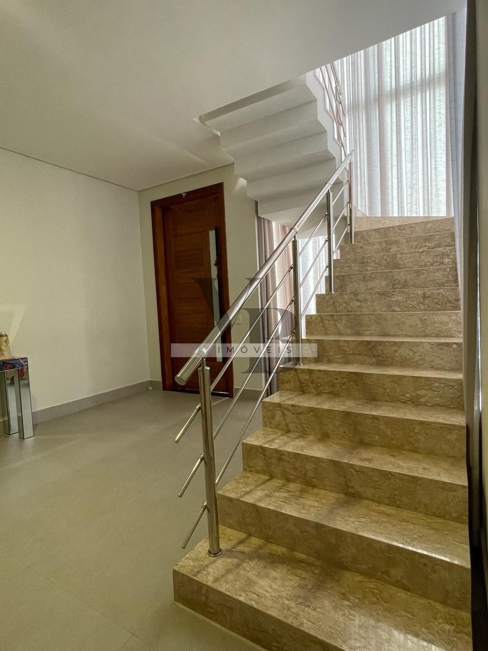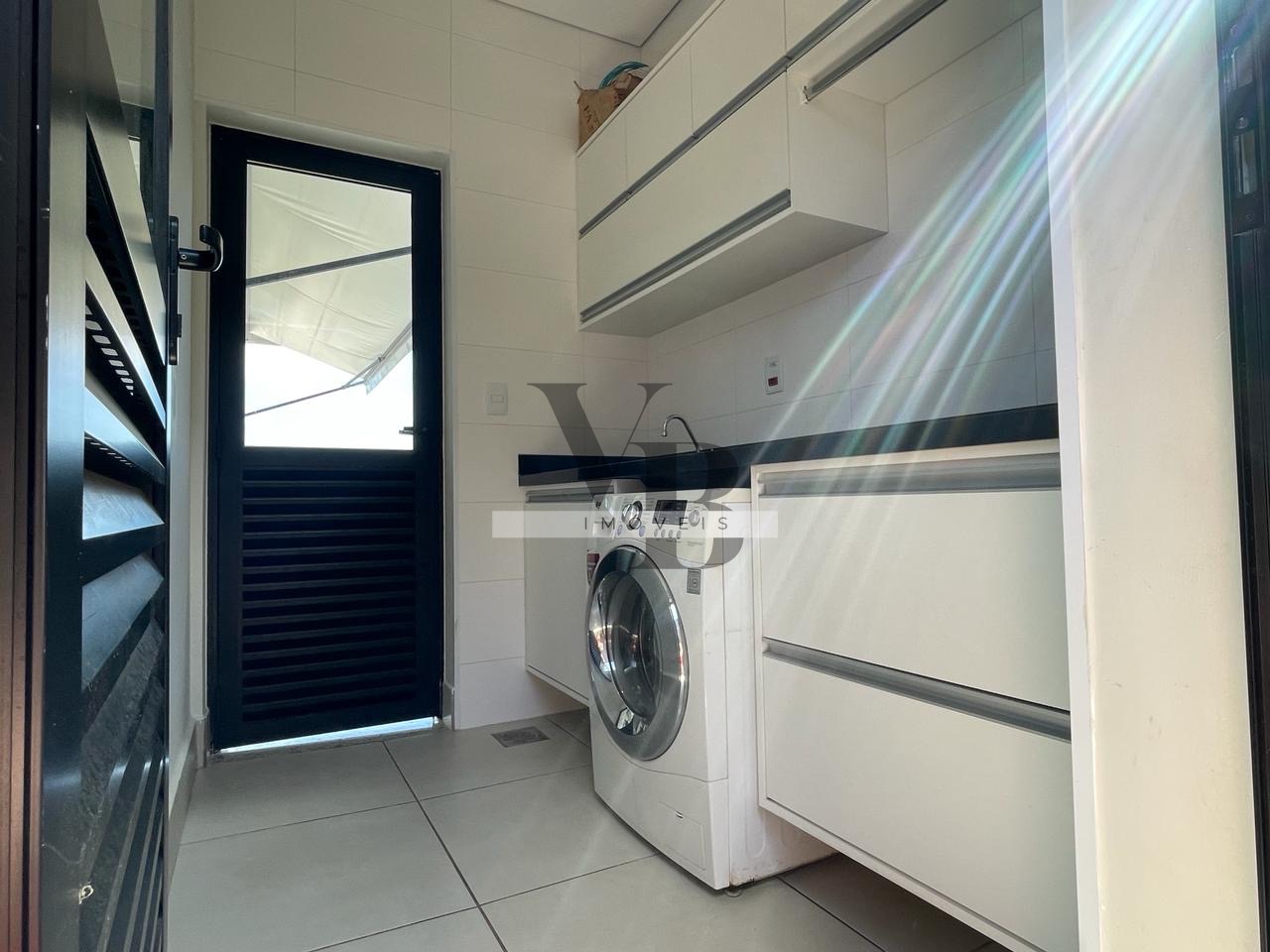 O imóvel possui 3 suítes (a master com closet), sala pé direito duplo integrada com sala de jantar, sala de estar no andar superior, cozinha com planejados, escritório, lavanderia, despensa, lavabo, wc externo, espaço gourmet, piscina, paisagismo e 4 vagas de garagem.