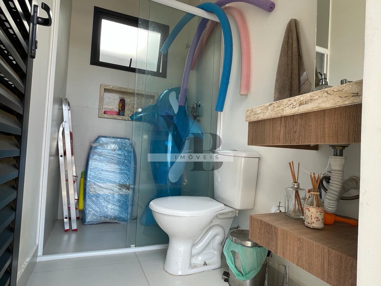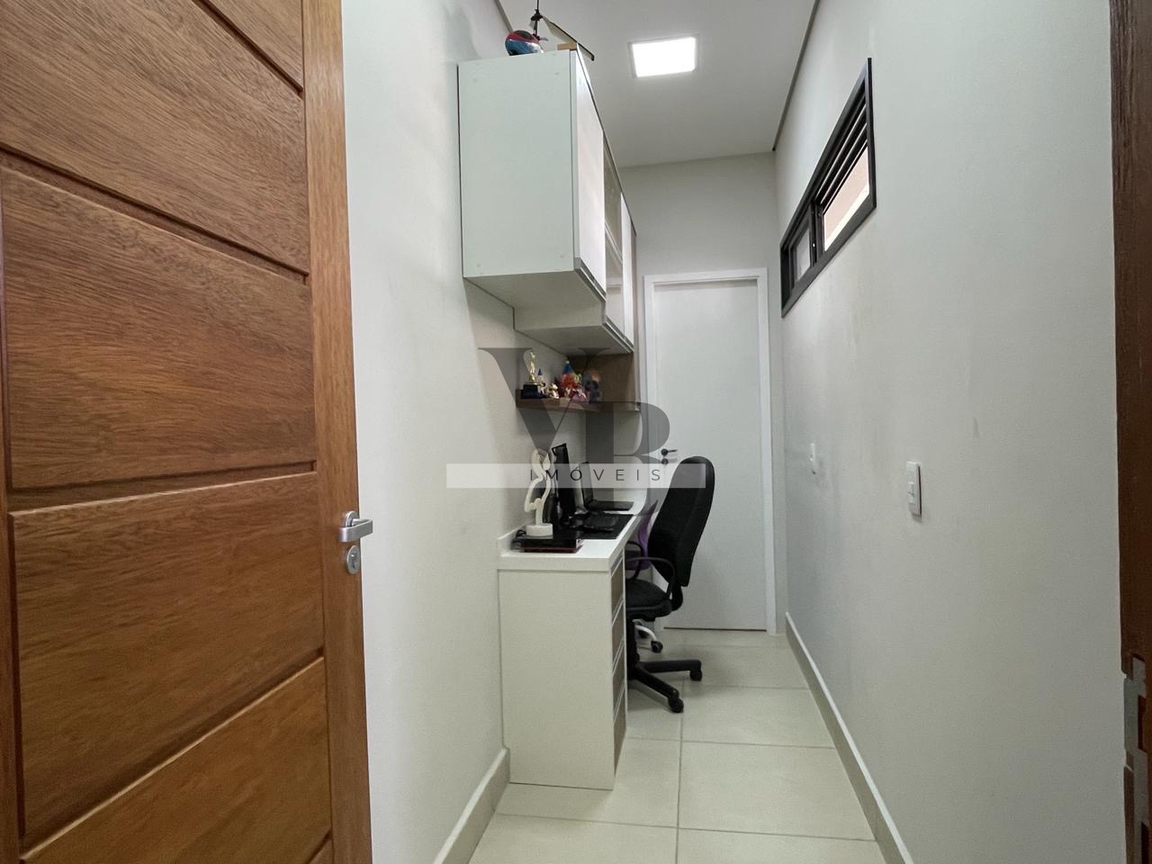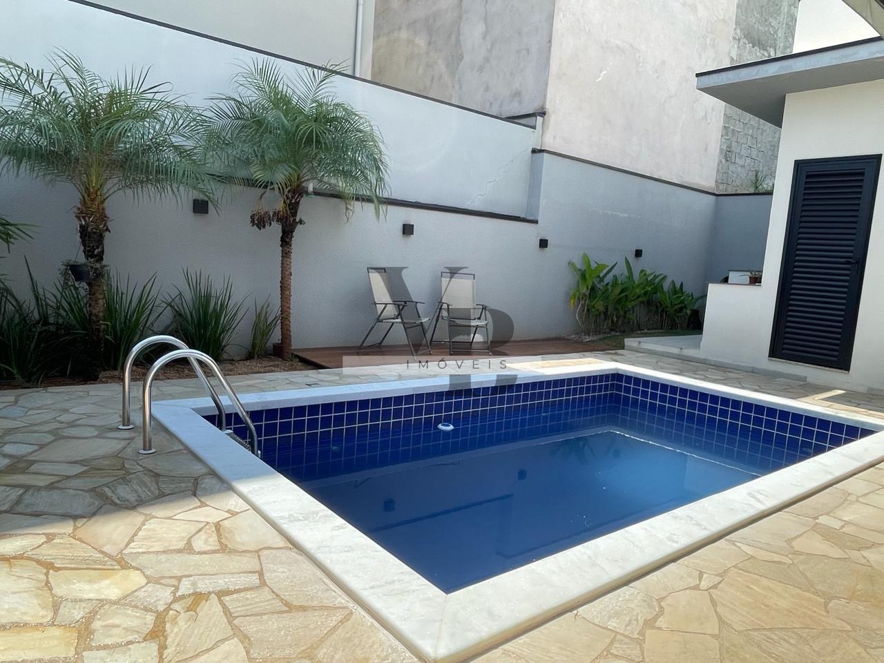 O imóvel possui 3 suítes (a master com closet), sala pé direito duplo integrada com sala de jantar, sala de estar no andar superior, cozinha com planejados, escritório, lavanderia, despensa, lavabo, wc externo, espaço gourmet, piscina, paisagismo e 4 vagas de garagem.