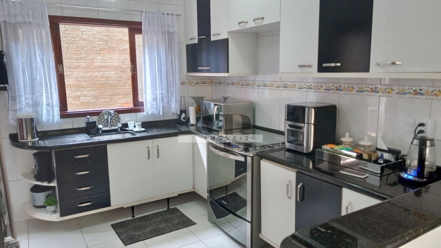 Possui sala de visita, estar e jantar, lavabo, cozinha estilo americana toda planejada, lavanderia, varanda com espaço gourmet, banheiro; parte superior com amplo terraço, escritório e sala de tv, 3 amplas suítes com armários e suíte master com closet, casa toda em piso cerâmico. Conta com 4 vagas de garagem.
