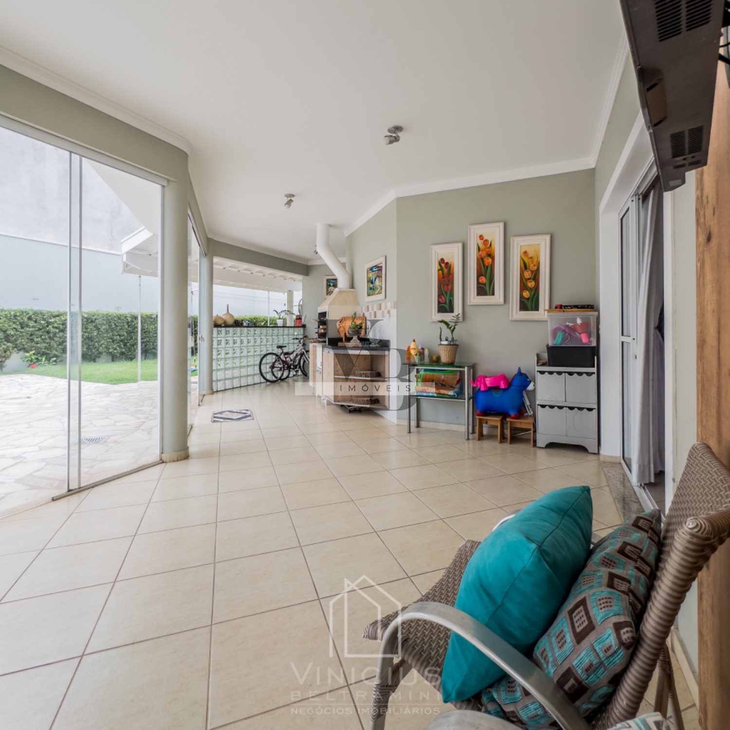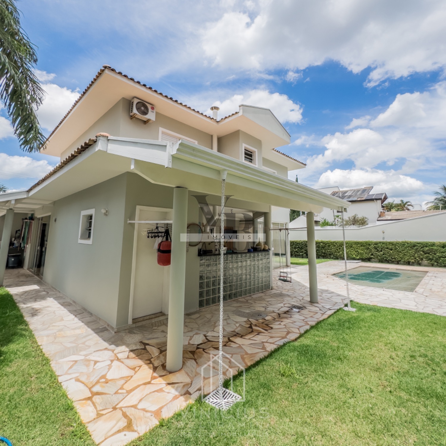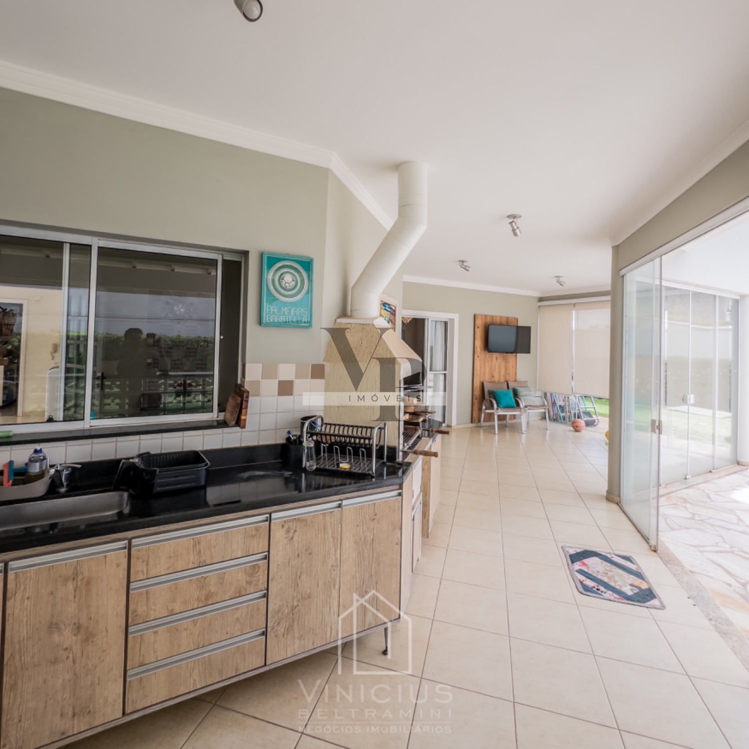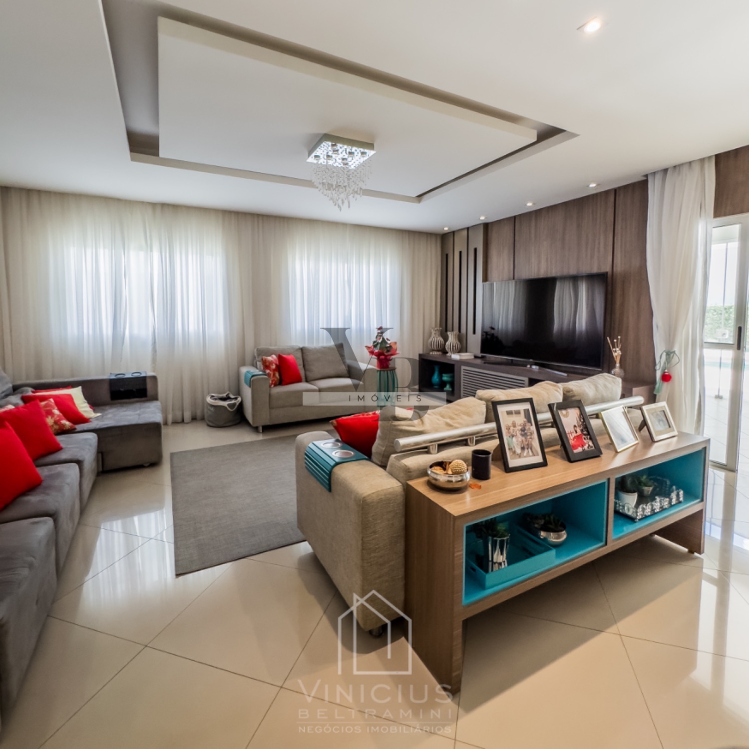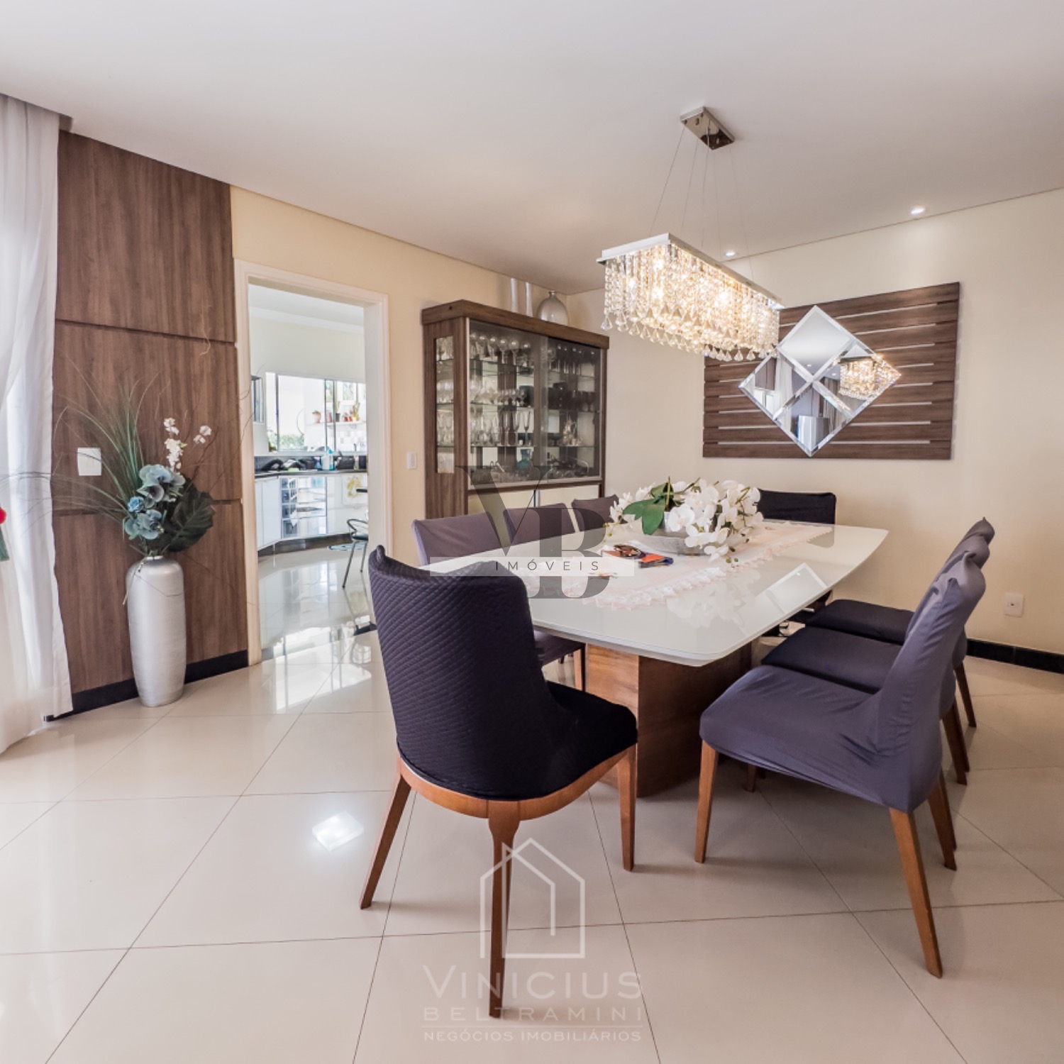onta com 4 dormitórios sendo, 1 suíte máster com banheira de hidromassagem e outras 2 suítes comuns. Living para 2 ambientes, escritório, lavabo, cozinha planejada com despensa, lavanderia. Espaço gourmet com churrasqueira. Amplo quintal com piscina e grama.