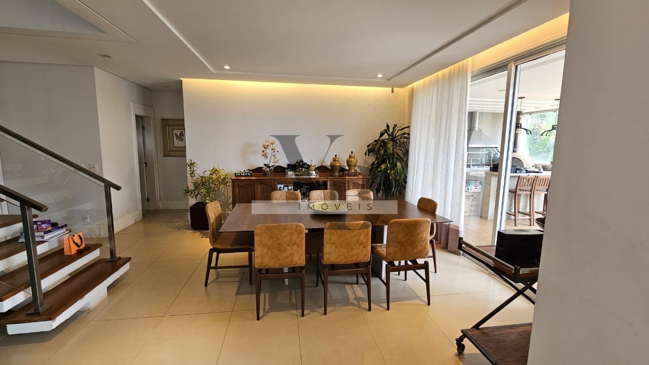Composto por 4 suítes, sendo máster com closet, cuba dupla, hidro e varanda, sala com living para 2 ambientes, lavabo, escritório, cozinha toda planejada com despensa, lavanderia, área gourmet, banheiro externo de apoio, quintal com piscina, espaço para brinquedoteca e academia.