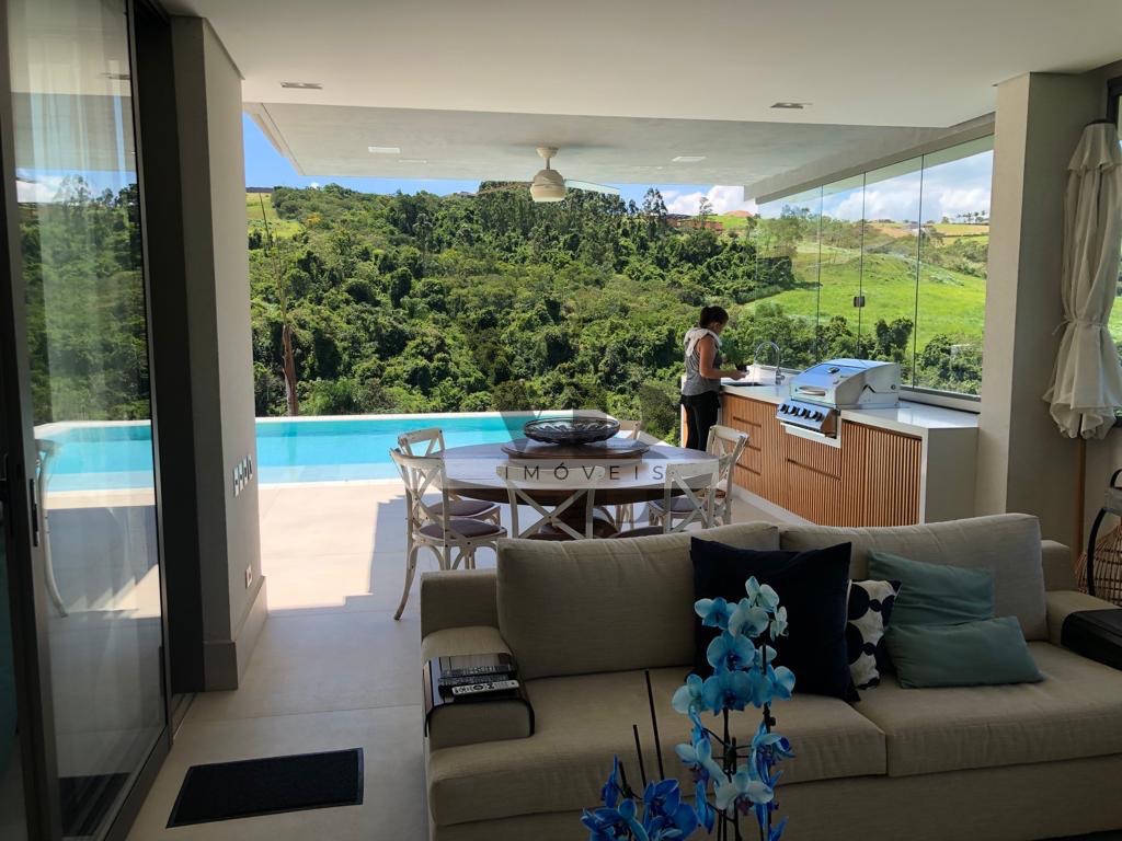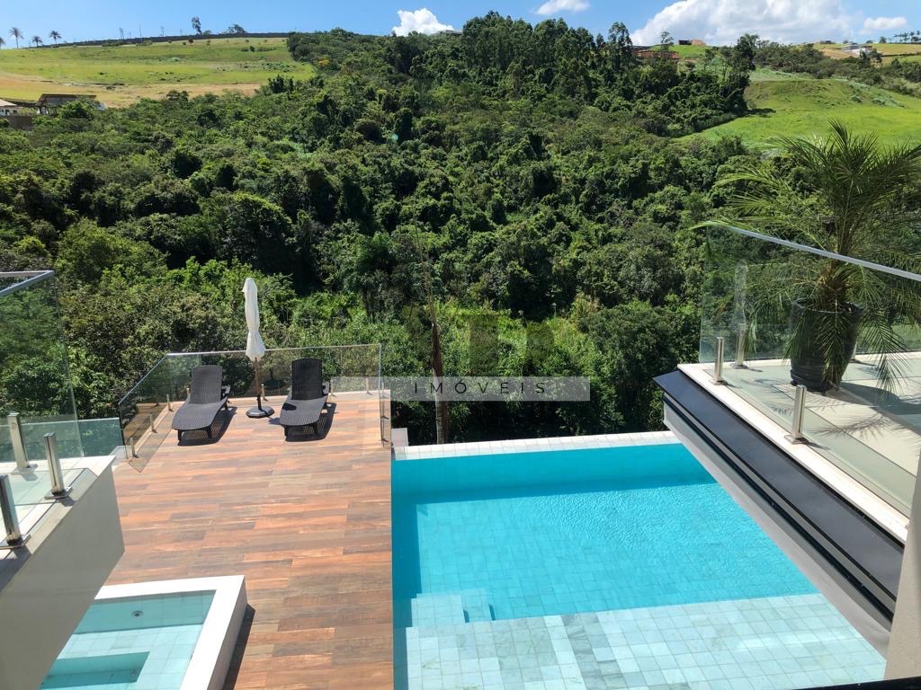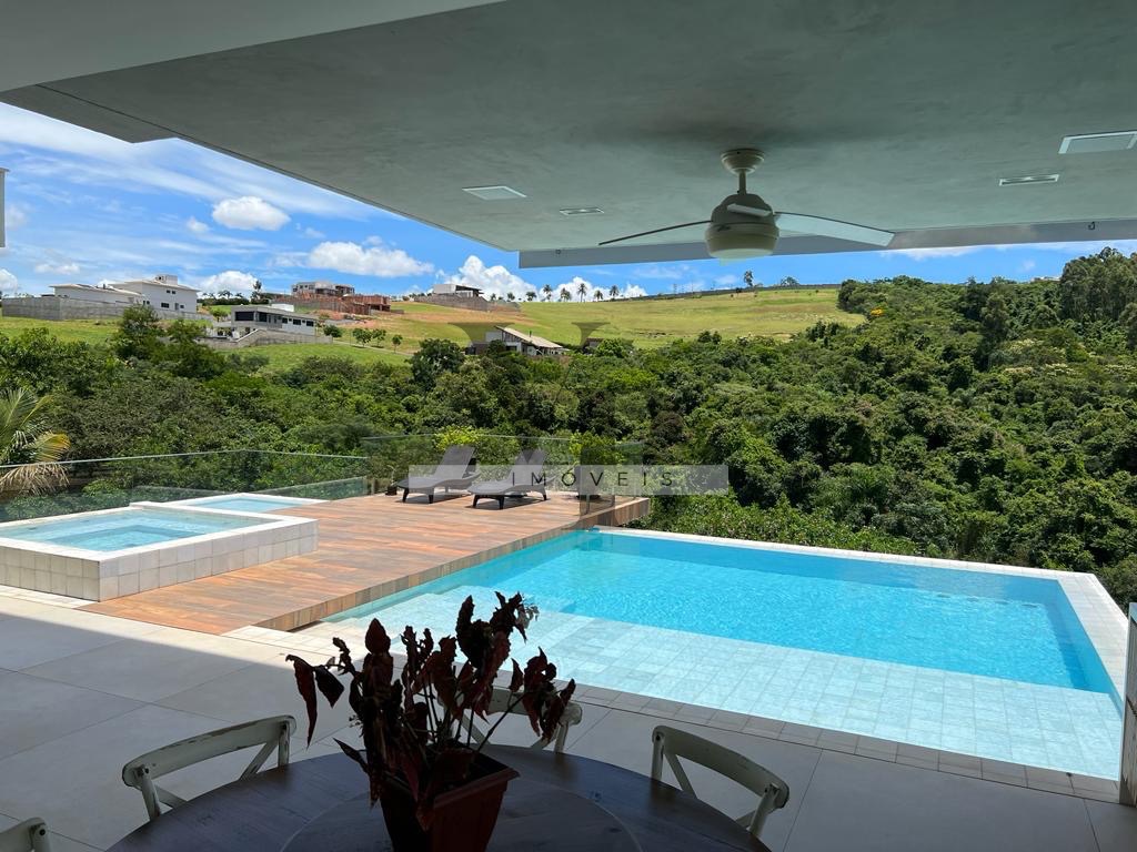 Casa com projeto incrível com salas amplas todas integradas, 5 amplas suítes na parte interna da casa e mais uma na parte externa com acesso pela garagem, 8 banheiros, escritório, home theater, cozinha planejada, terraço gourmet com churrasqueira a gás, 1 quiosque com churrasqueira à carvão, 1 redário, linda piscina com jacuzzi, poço artesiano, placas fotovoltaicas, garagem subterrânea para 5 carros, belíssimo paisagismo com uma vista espetacular e jardim maravilhoso com irrigação automática.