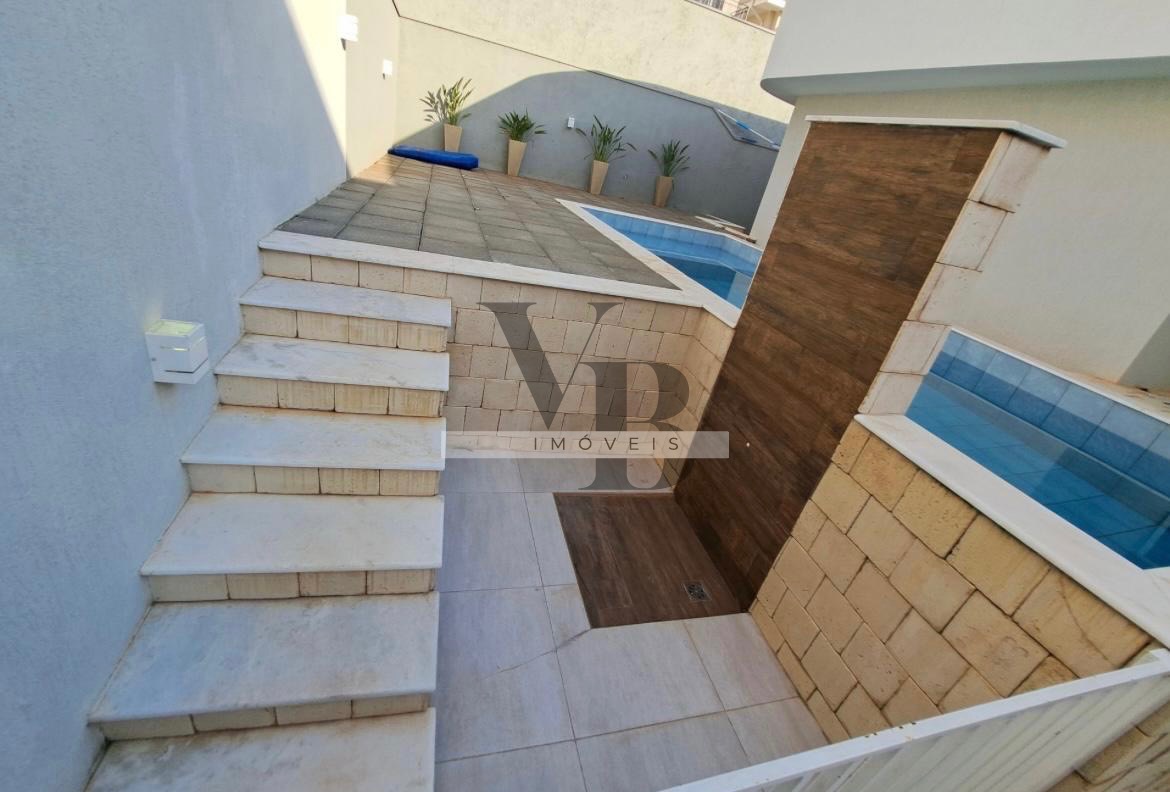 Casa composta por 3 suítes, sala com living para 2 ambientes, cozinha planejada, escritório no andar superior, área gourmet, deck com piscina aquecida e ducha.