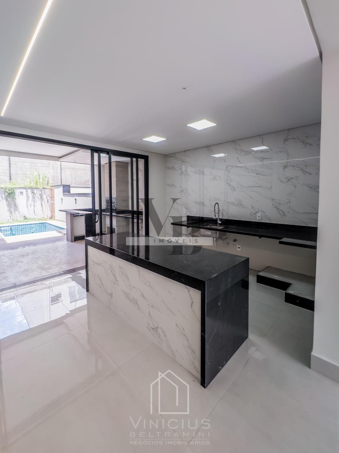 projeto moderno, composto com 3 suítes, escritório, casa toda integrada, acabamento de primeira, sala com living 2 ambientes, cozinha ampla, área gourmet com churrasqueira e quintal com piscina.