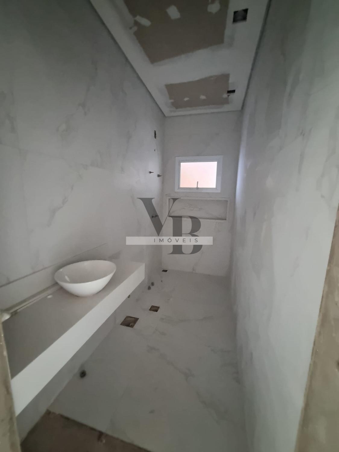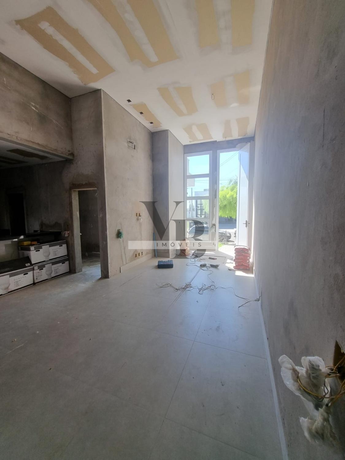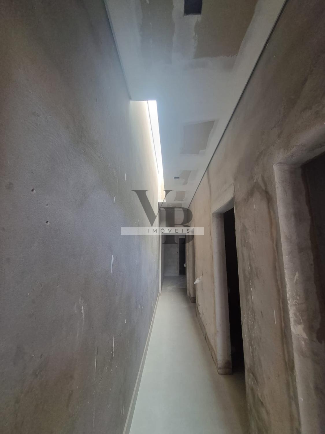 Casa térrea em construção com 3 dormitórios, sendo 1 suíte com amplo closet e acesso ao quintal com piscina. Living para 2 ambientes, cozinha americana com despensa, escritório e banheiro social. Área de serviço separada e banheiro externo na área da piscina. Acabamento de alto padrão com materiais premium.
