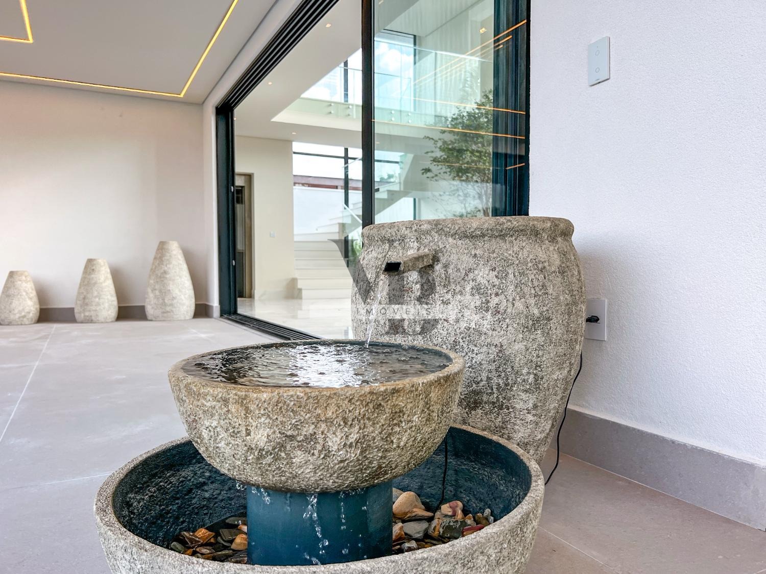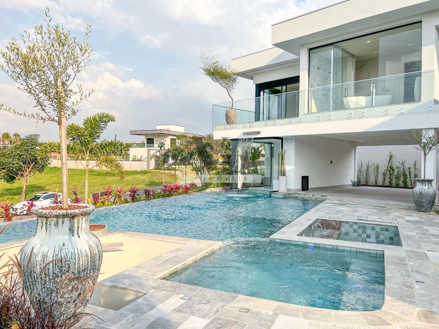 Composta por 4 suítes com varandas e closet e máster com com banheira vulcânica, com vista para área de piscina, salas amplas e rica em luz natural, para vários ambientes, com pé direito duplo e design sofisticado, com escadas iluminadas, projetos de iluminação, elevador, cozinha gourmet totalmente equipada com todos os eletrodomésticos de alto padrão.