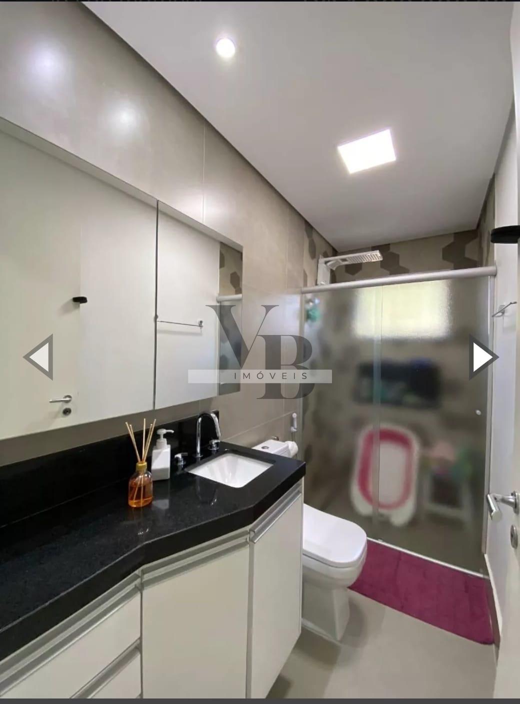 Na parte superior são 3 quartos com ar condicionado, sendo 1 suíte com closet e sacada, banheiro social e hall de integração. Toda a casa com telas mosqueteiro, piso em porcelanato, móveis planejados em todos os cômodos, somente área gourmet ainda não possui armário.