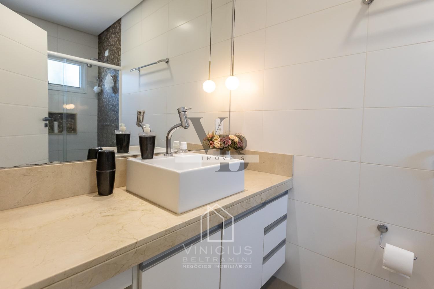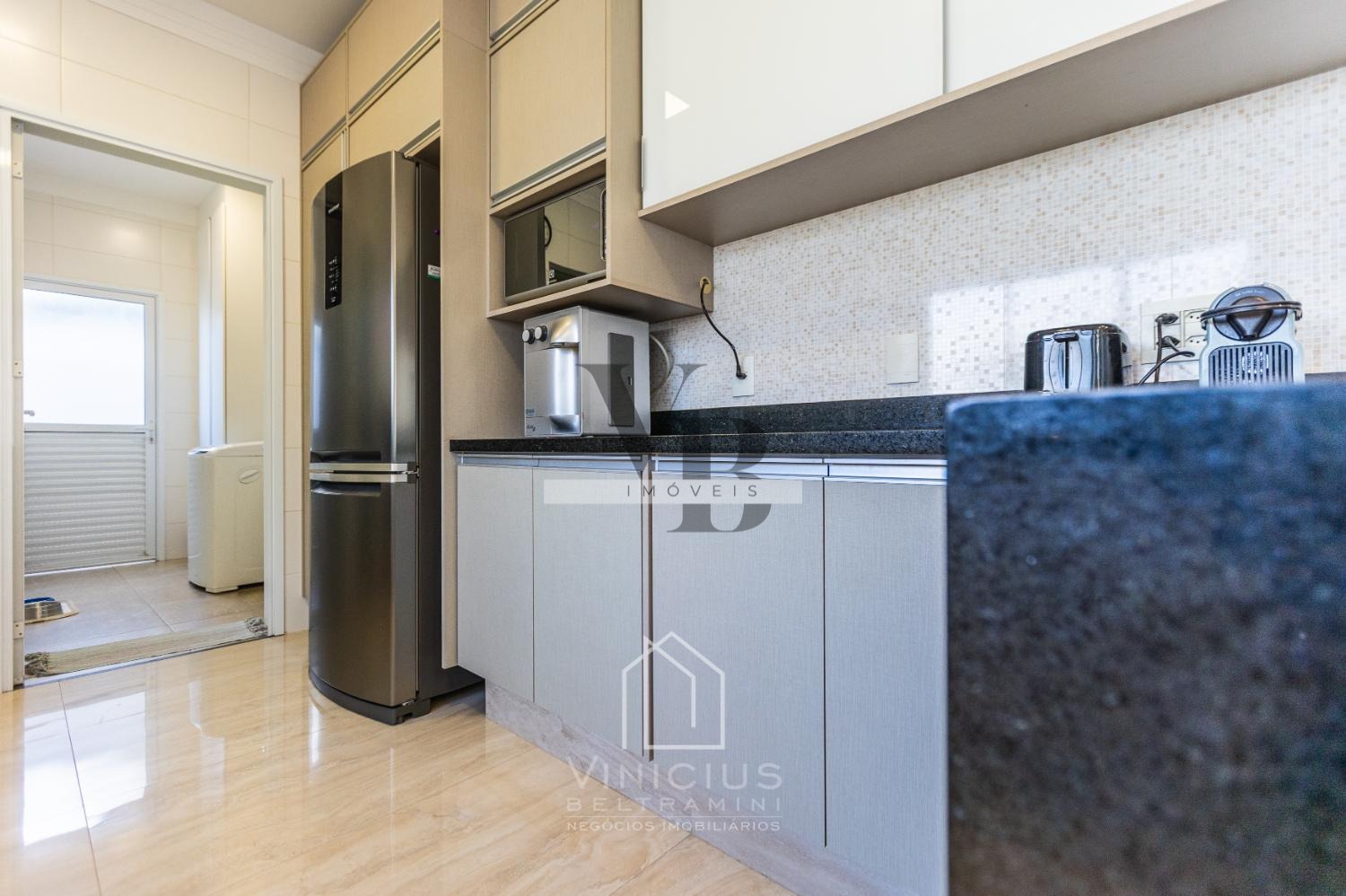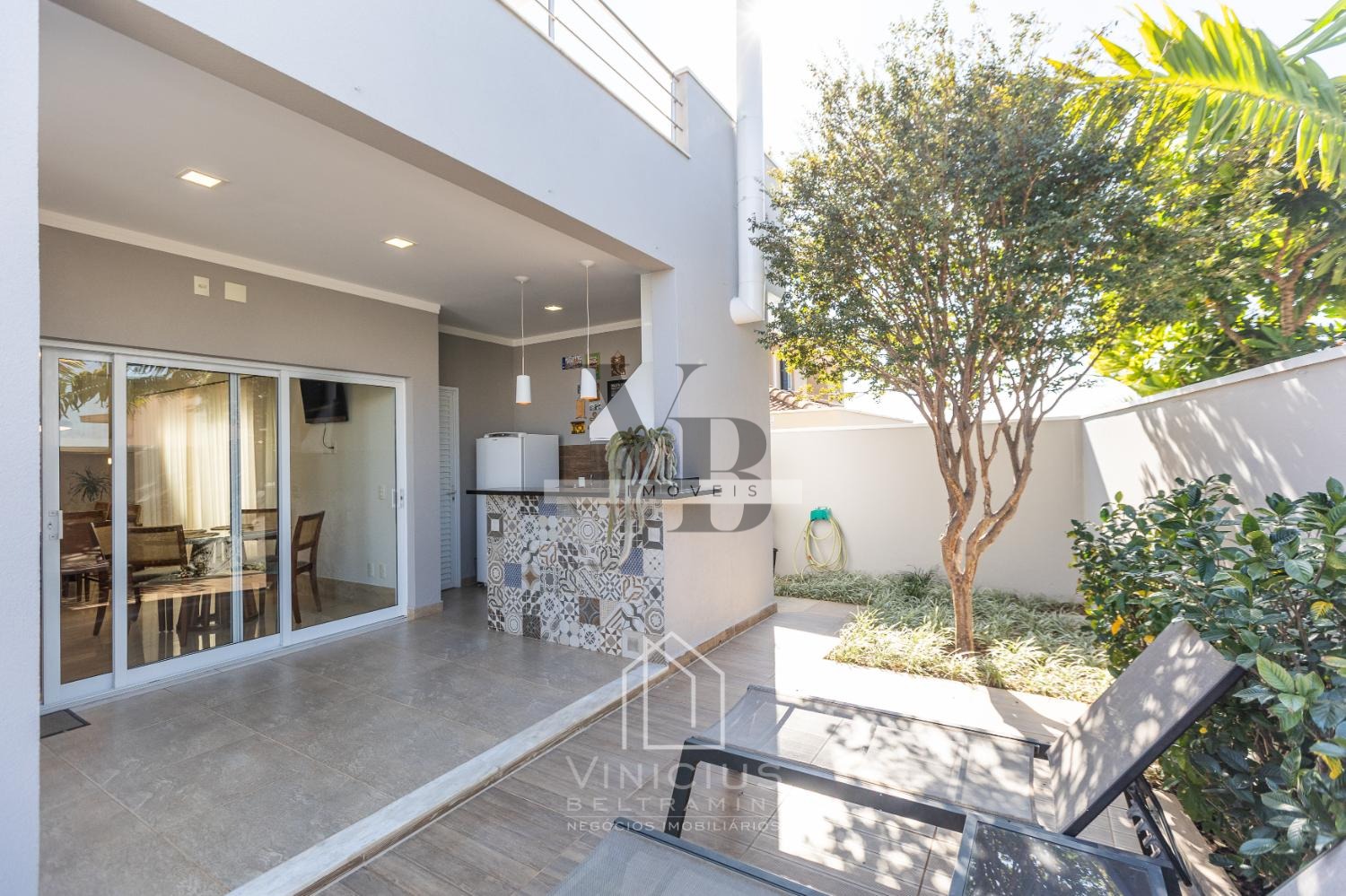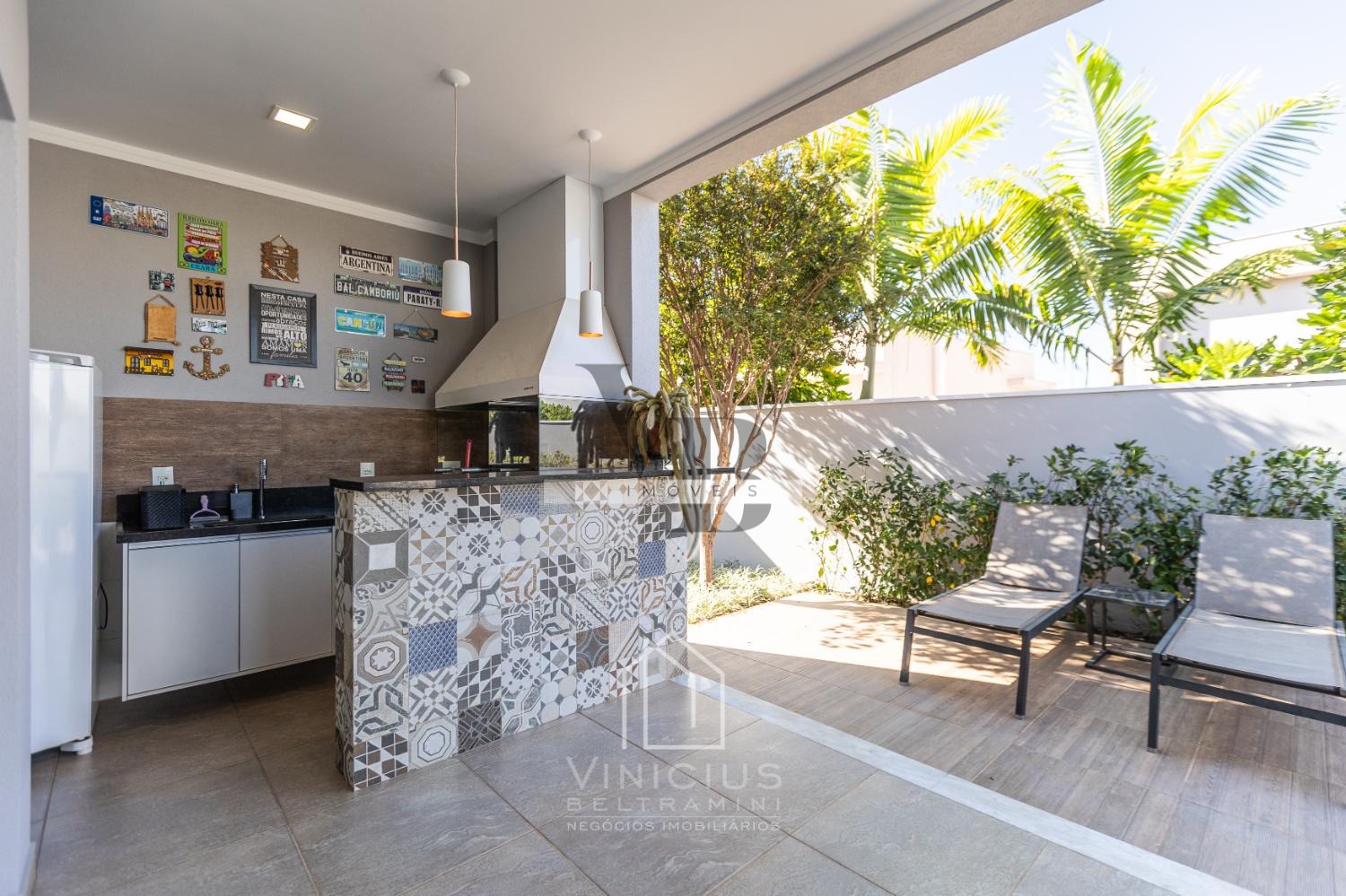 A cozinha americana, moderna e prática, se conecta à área social e ao espaço gourmet completo, ideal para quem adora receber. A piscina completa o lazer privativo, criando o cenário perfeito para momentos de relaxamento e diversão.