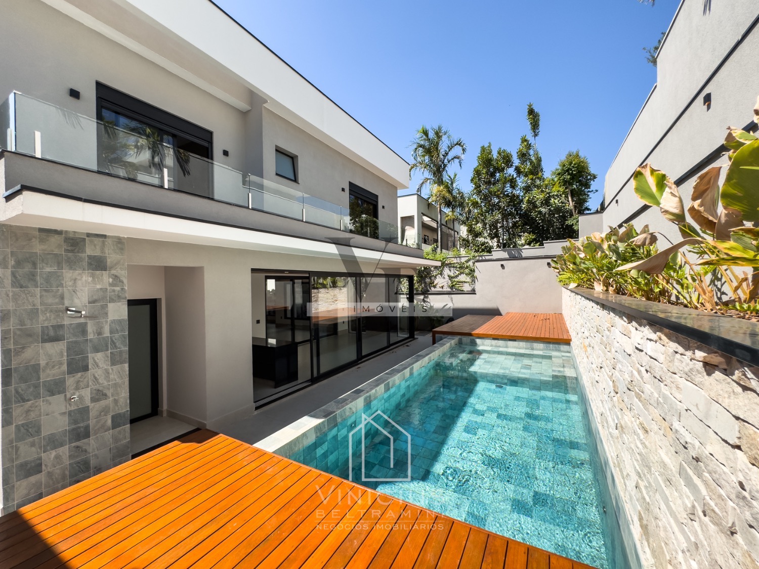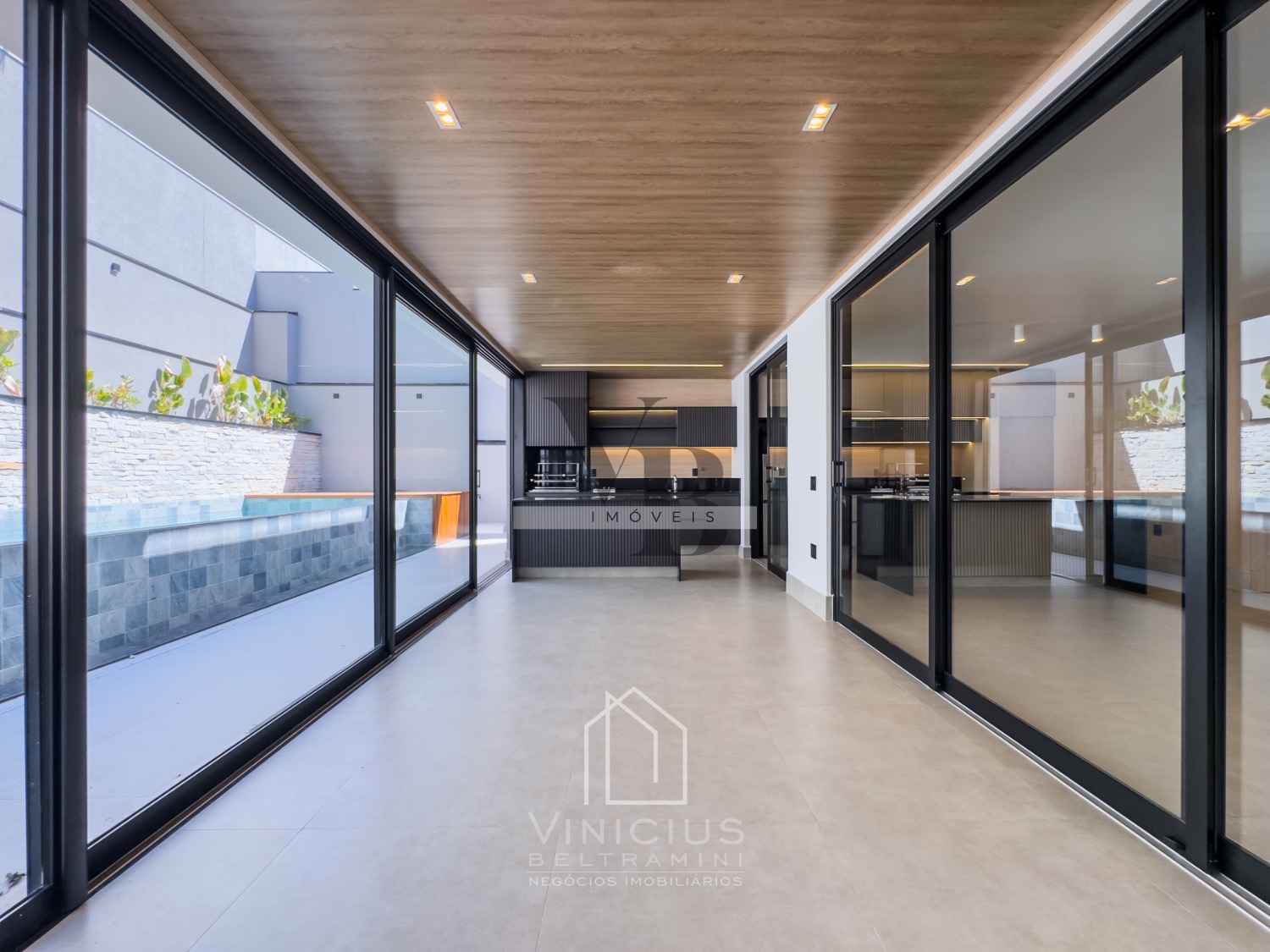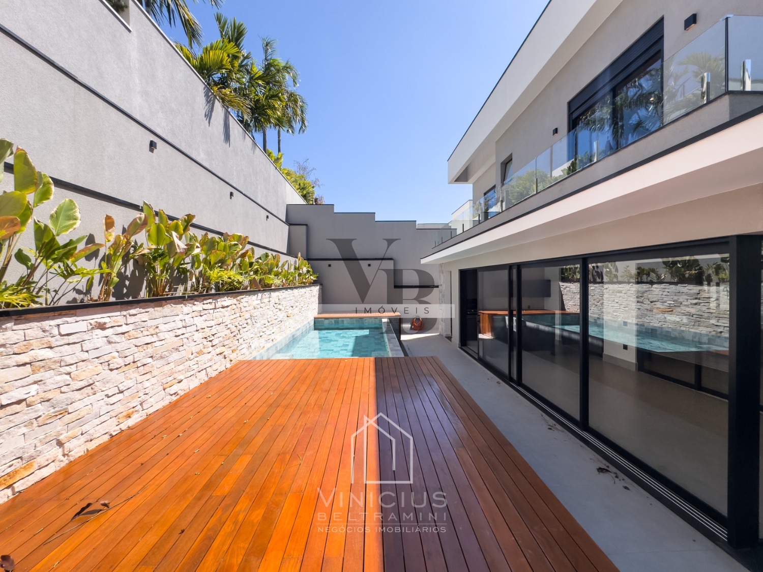 Living com pé direito duplo, cozinha com ilha totalmente planejada, com despensa. Espaço gourmet generoso, equipado e fechado em vidro. Piscina com spa, já aquecida, com deck e paisagismo, banheiro externo.