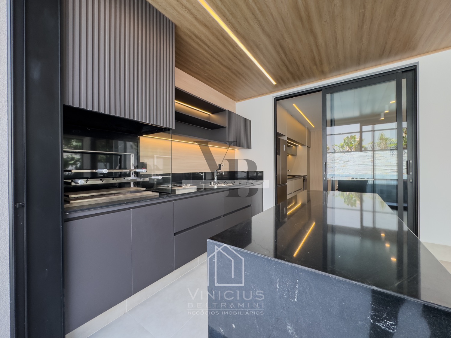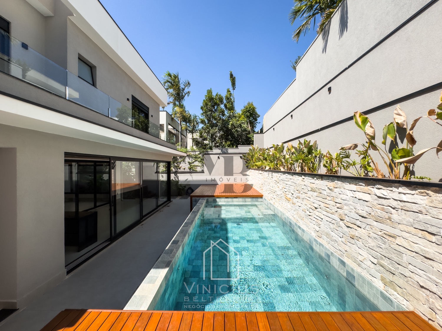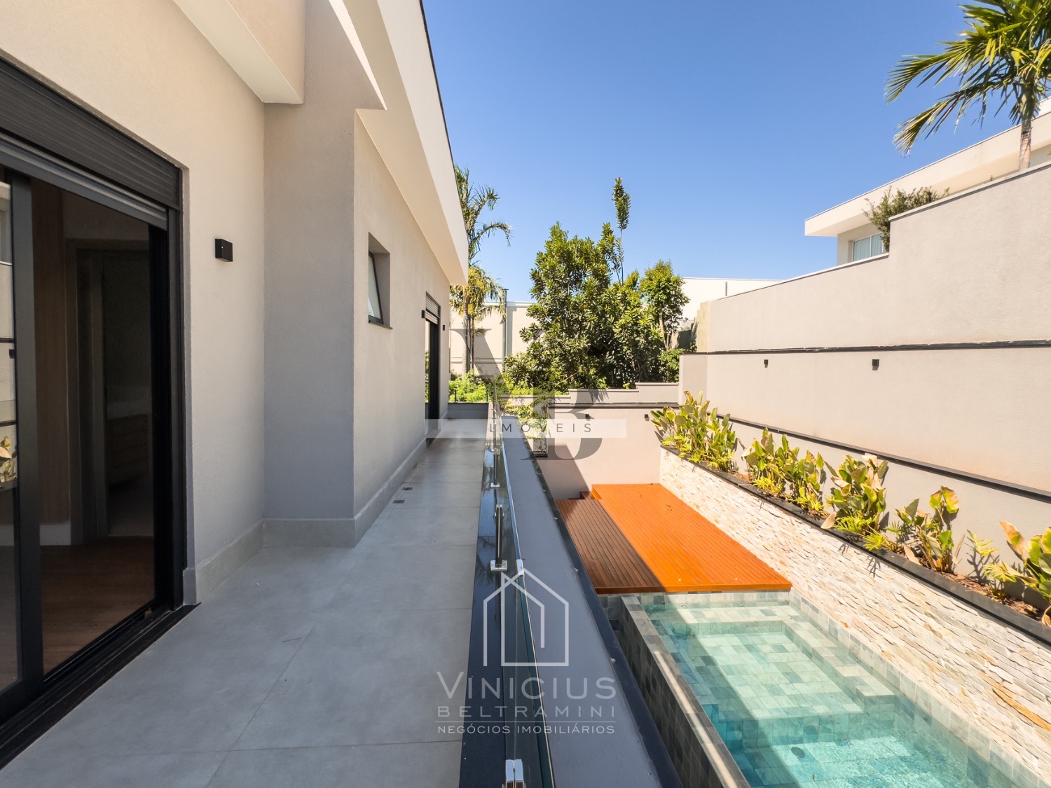 Living com pé direito duplo, cozinha com ilha totalmente planejada, com despensa. Espaço gourmet generoso, equipado e fechado em vidro. Piscina com spa, já aquecida, com deck e paisagismo, banheiro externo.