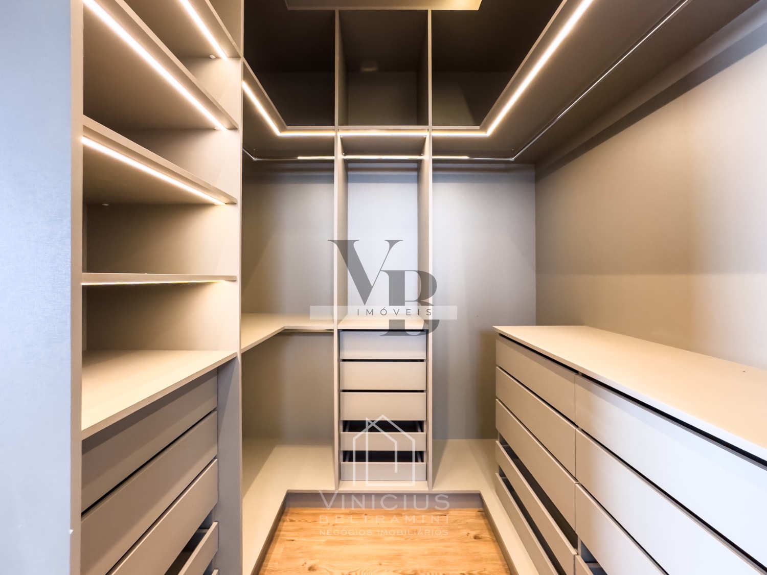 Com 5 suítes, sendo 1 térrea (que pode ser usada também com um home theater ou escritório), mais 4 no pavimento superior, ricas em armários, além de um projeto luminotécncio impressionante.