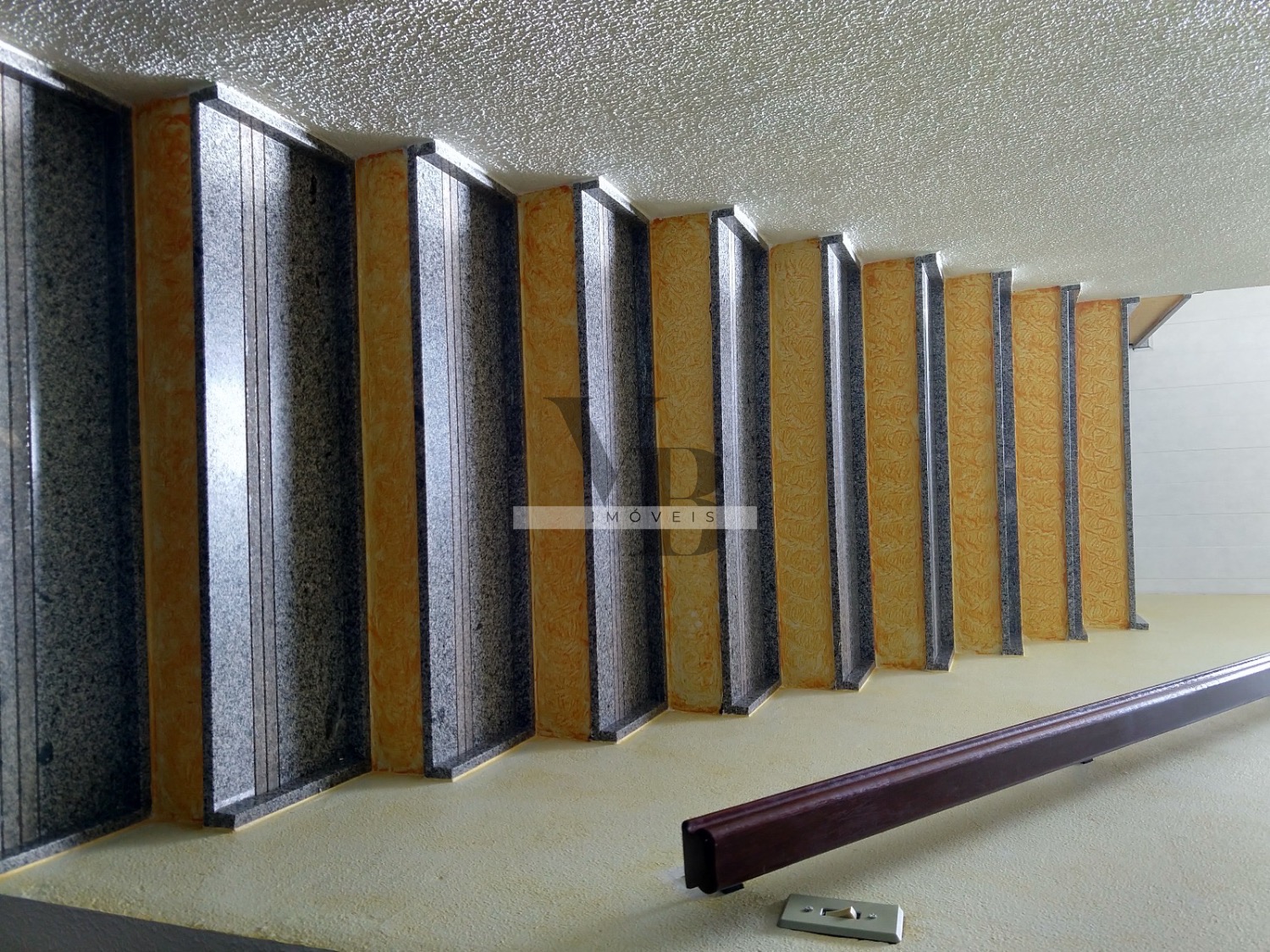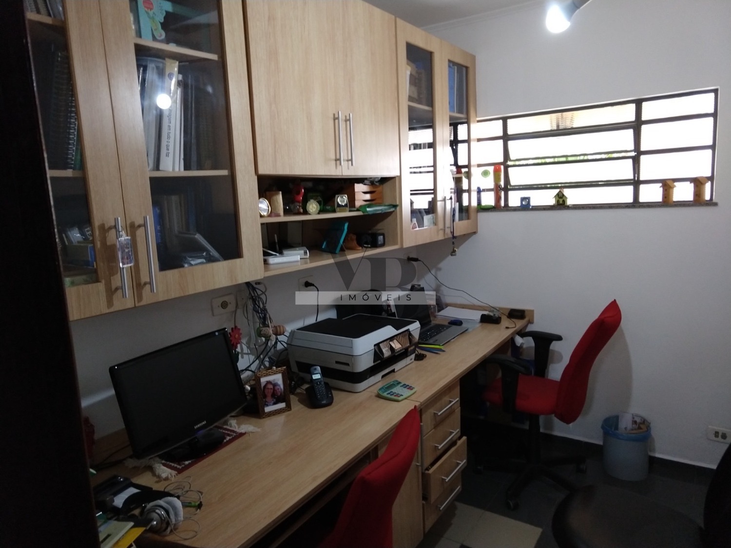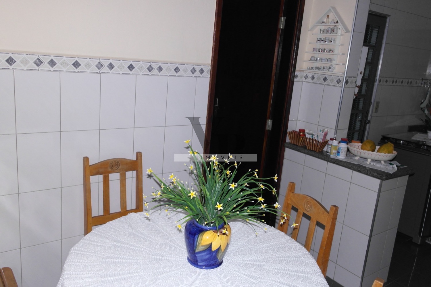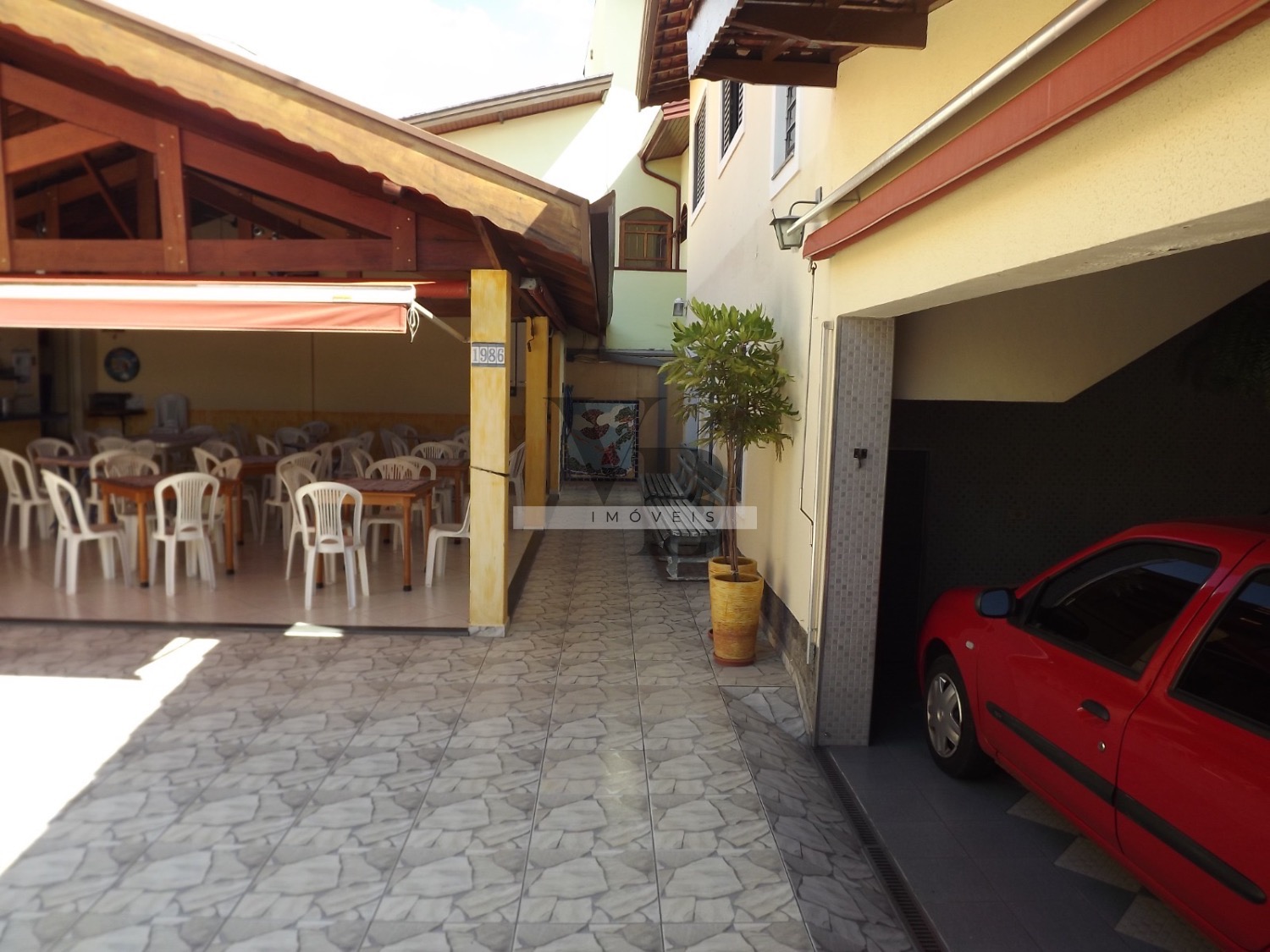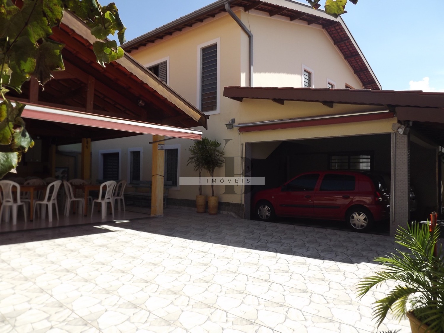 Térreo: sala de estar ampla, sala de jantar, escritório com móveis planejados, quarto para hóspedes com armário, banheiro social, copa e cozinha com móveis planejados, despensa, área de serviço ampla, garagem para 2 automóveis, quarto para empregada ou ferramentas, banheiro, área de lazer (com cozinha e churrasqueira) para festas/encontros com capacidade para 100 pessoas ou guardar 4 automóveis, amplo quintal, com canteiros, parreiras, canil e espaço para construir piscina.