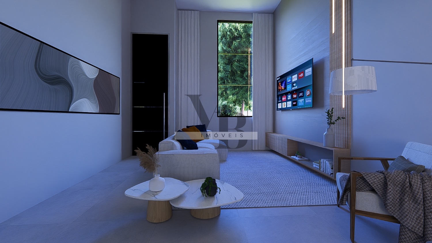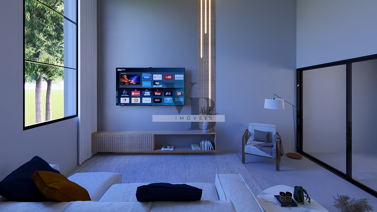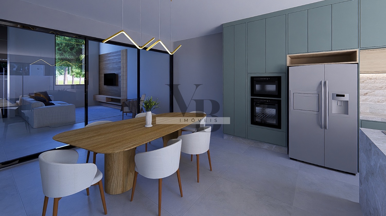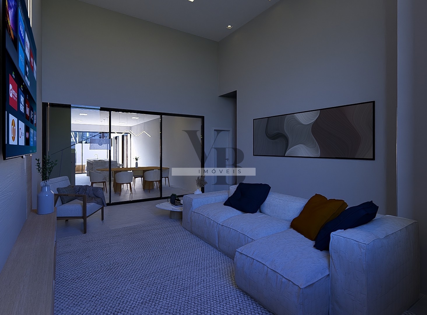 • Sala de estar e jantar integradas com pé-direito duplo