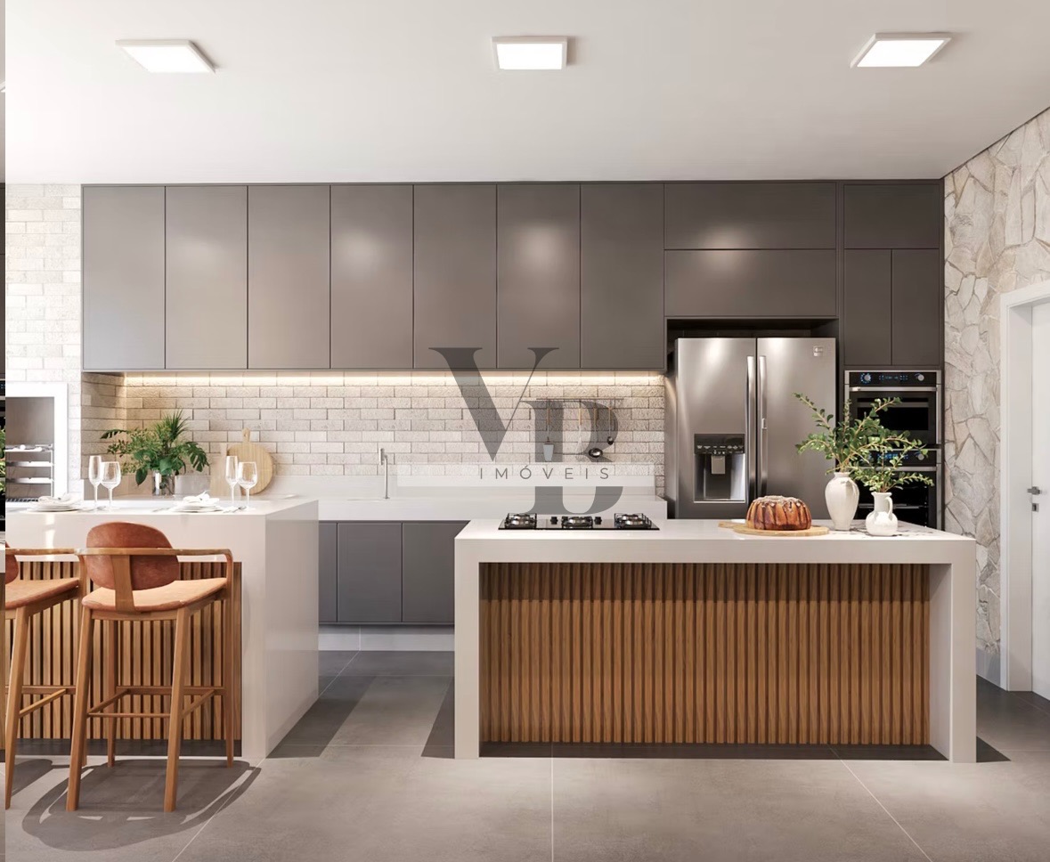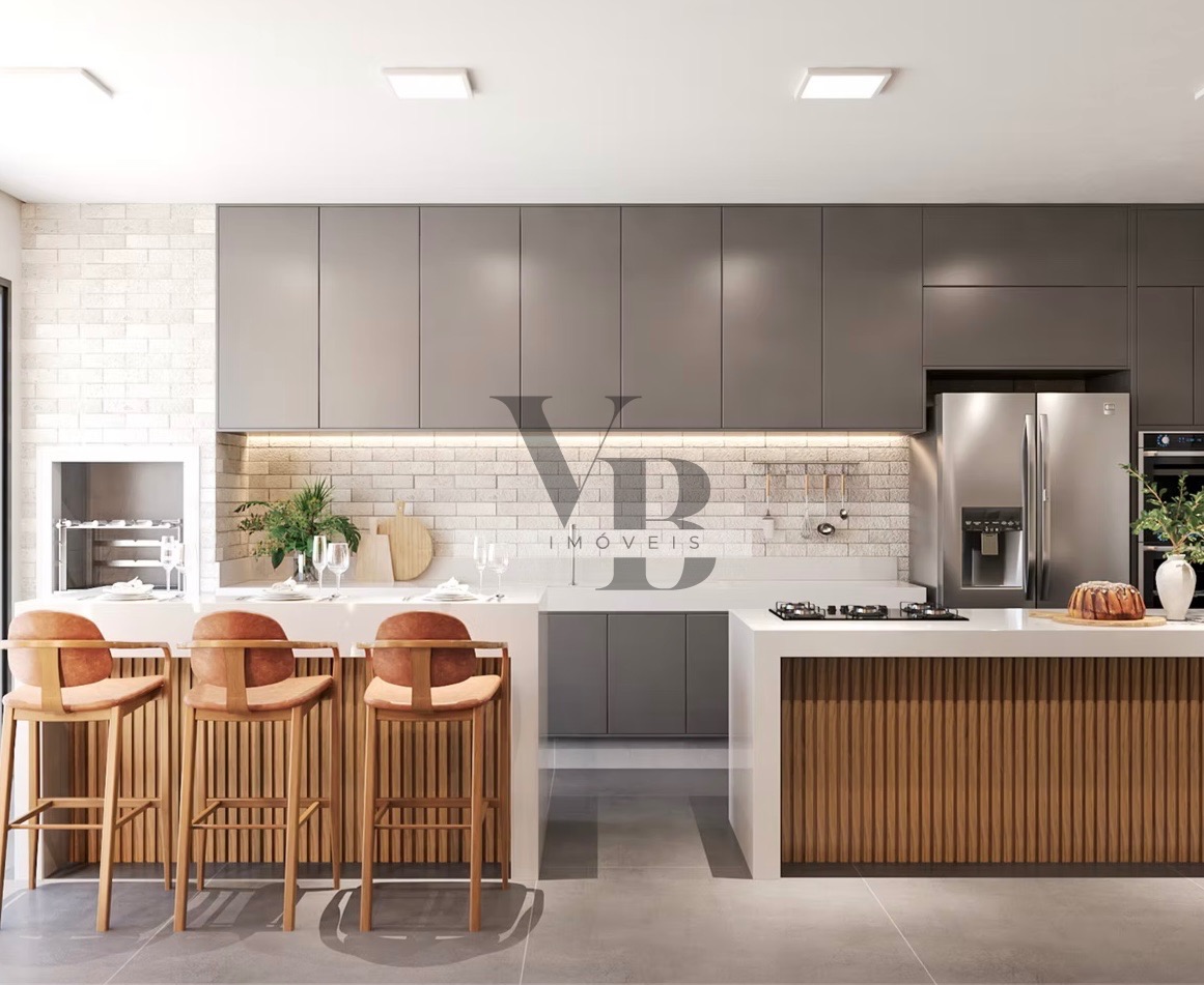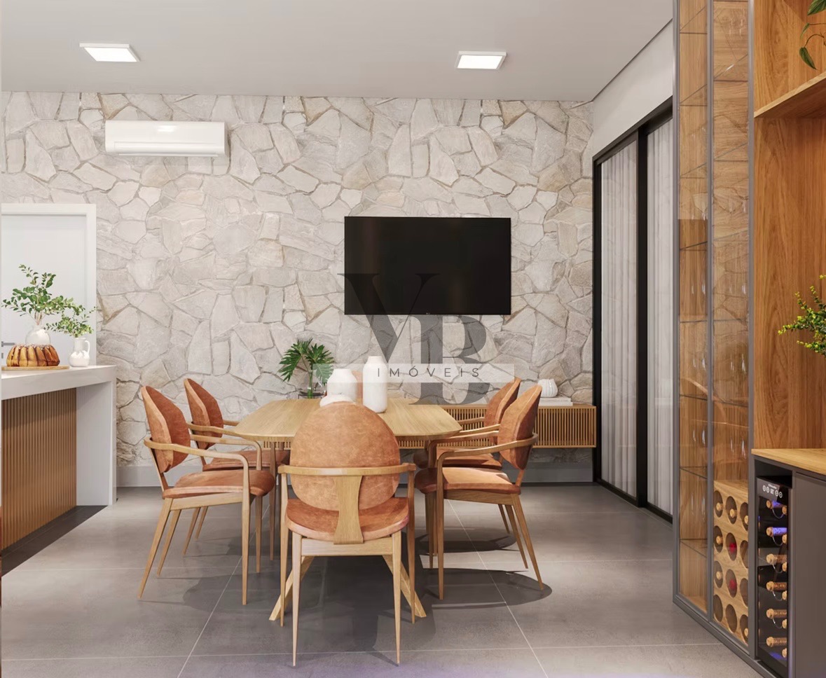 Composta por 3 suítes amplas, todas climatizadas e com móveis planejados, sala de estar e jantar integradas, com pé-direito duplo e muita iluminação natural, cozinha planejada e espaço gourmet completo, integrados à área externa, piscina privativa com banheiro externo de apoio, lavabo elegante, área de serviço equipada, persianas automatizadas, box e espelhos até o teto nos banheiros, metais e louças de alto padrão (Deca ou Celite).
