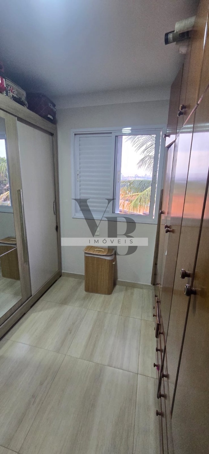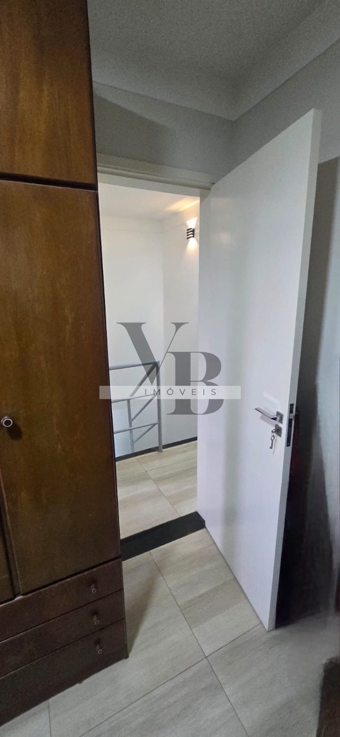 e na parte superior, encontra-se 3 quartos, incluindo suíte com ar-condicionado e armário grande planejado, banheiro social na parte superior também com armários, tudo em porcelanato.