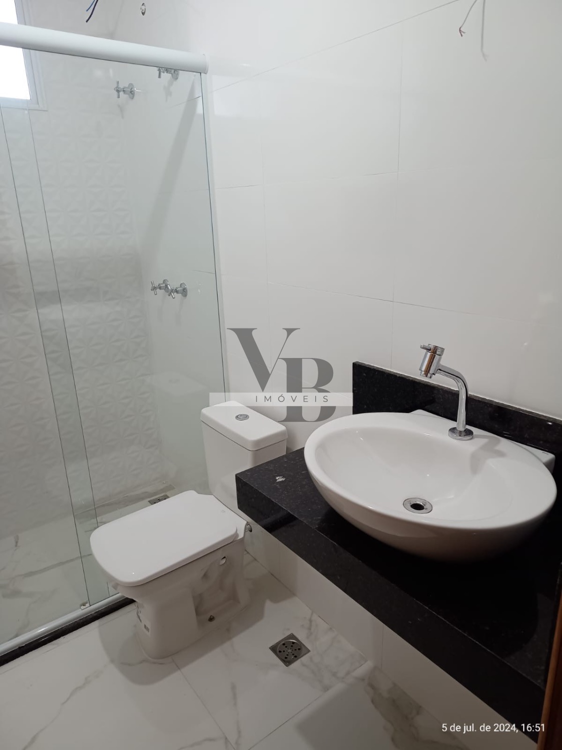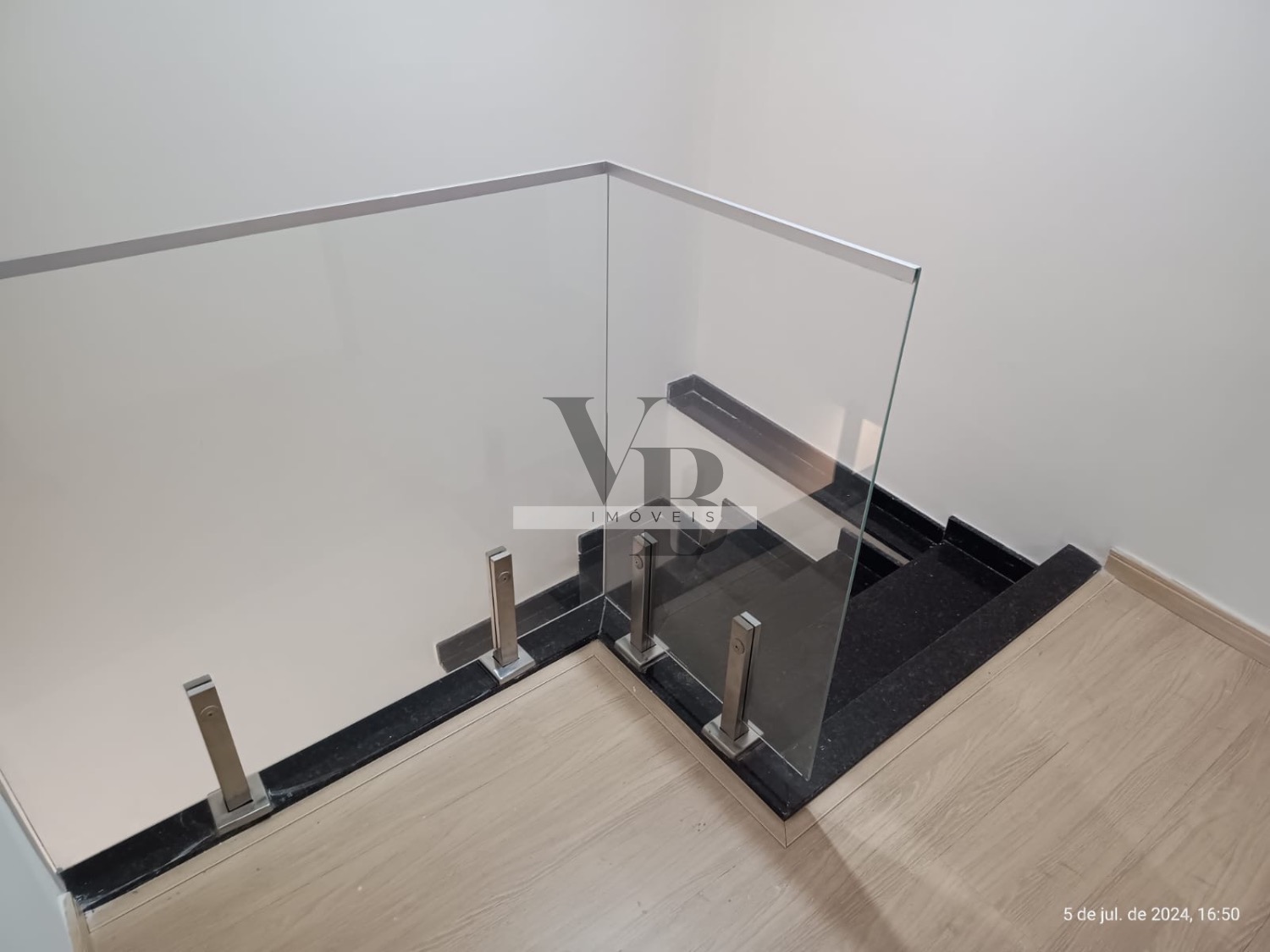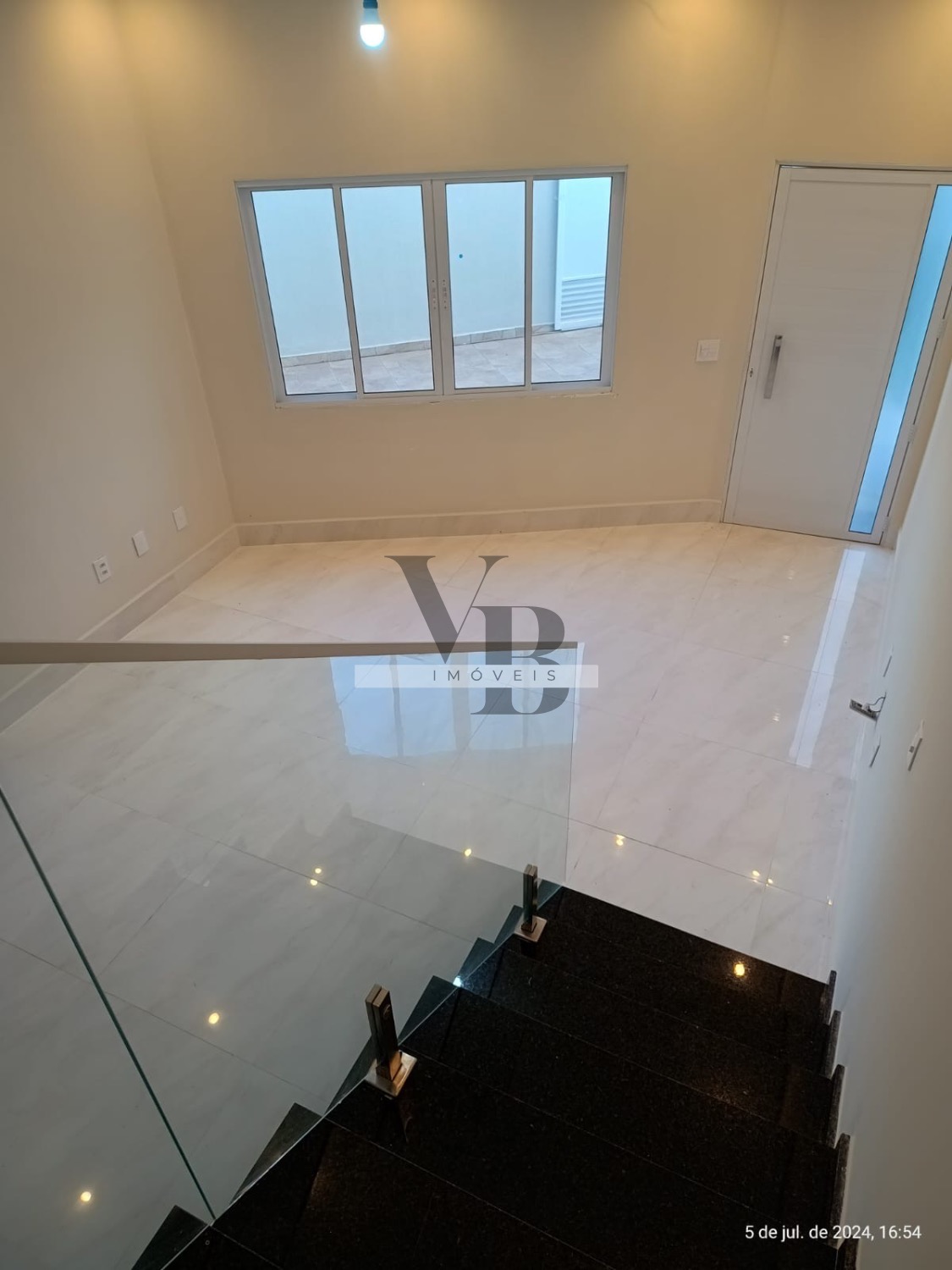 Lindo sobrado residencial com 100,00m² de construção e 148,00m² de terreno. Com 2 suítes, 2 salas, 2 banheiros, 3 vagas, Sobrado amplo com sala de estar e sala de jantar, cozinha americana, lavanderia conjugada, quintal gramado, espaço para área de lazer. Pontos de ar condicionado, nos quartos e sala, tubulação para água quente, cerca elétrica completa, portão automatizado, acabamentos com porcelanato polido, acetinado, revestimento retificado e laminados nos quartos, bancadas e escadas em granito, vidros sacadas, guarda corpo e box em Blindex . Ótima localização, próximos a comércios e fácil acesso as principais rodovias.