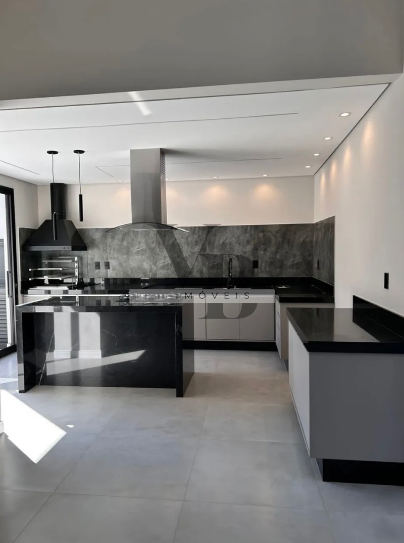Cozinha gourmet com ilha, cooktop, forno, coifa e churrasqueira