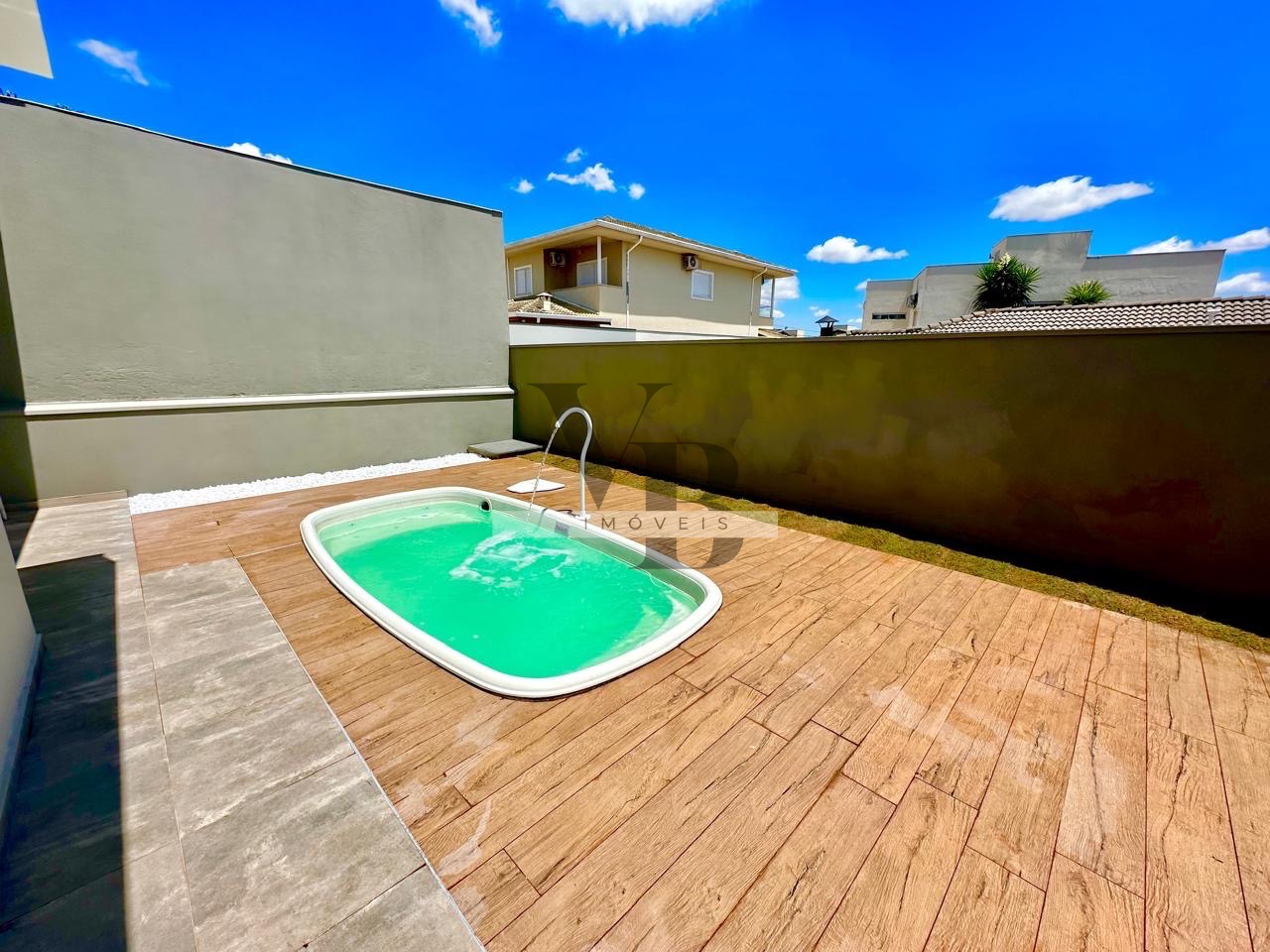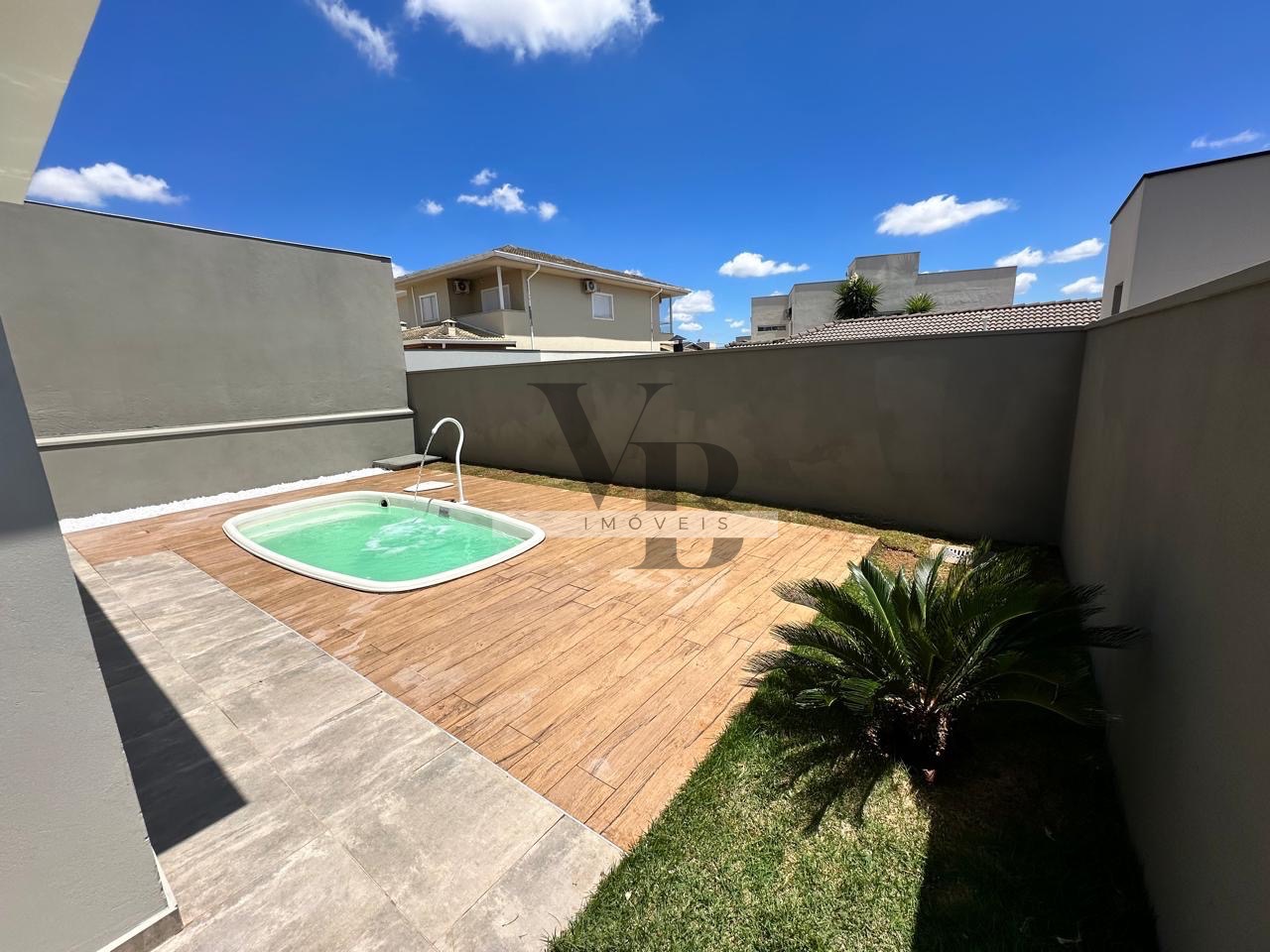 Quintal espaçoso com piscina.