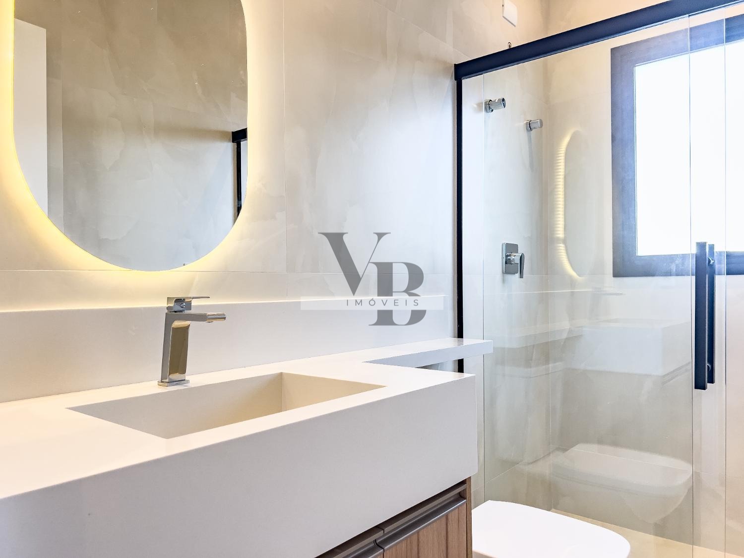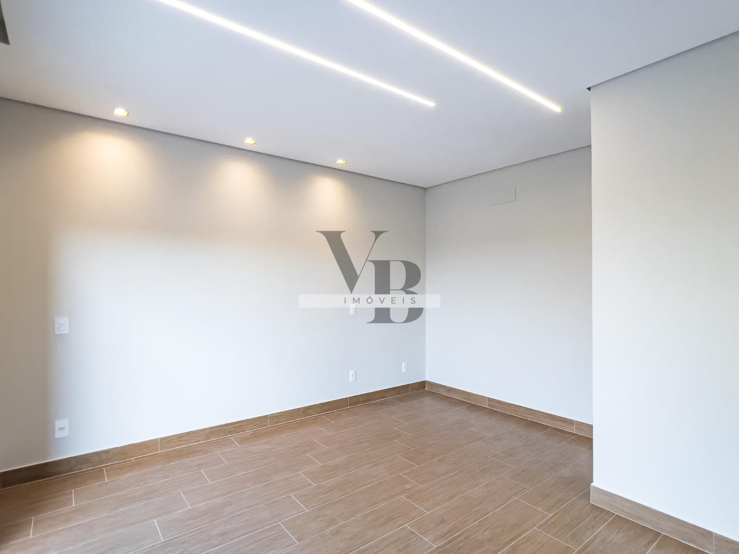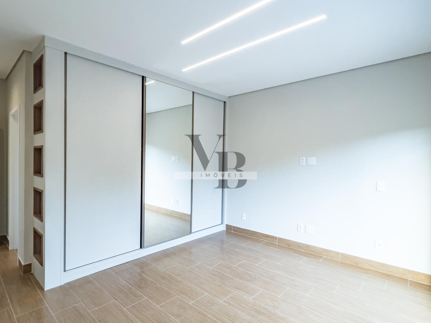 Projeto sofisticado e funcional com 3 suítes no piso superior, todas com varanda e persianas automatizadas, além de 1 cômodo multiuso no térreo (reversível para 4ª suíte ou escritório).