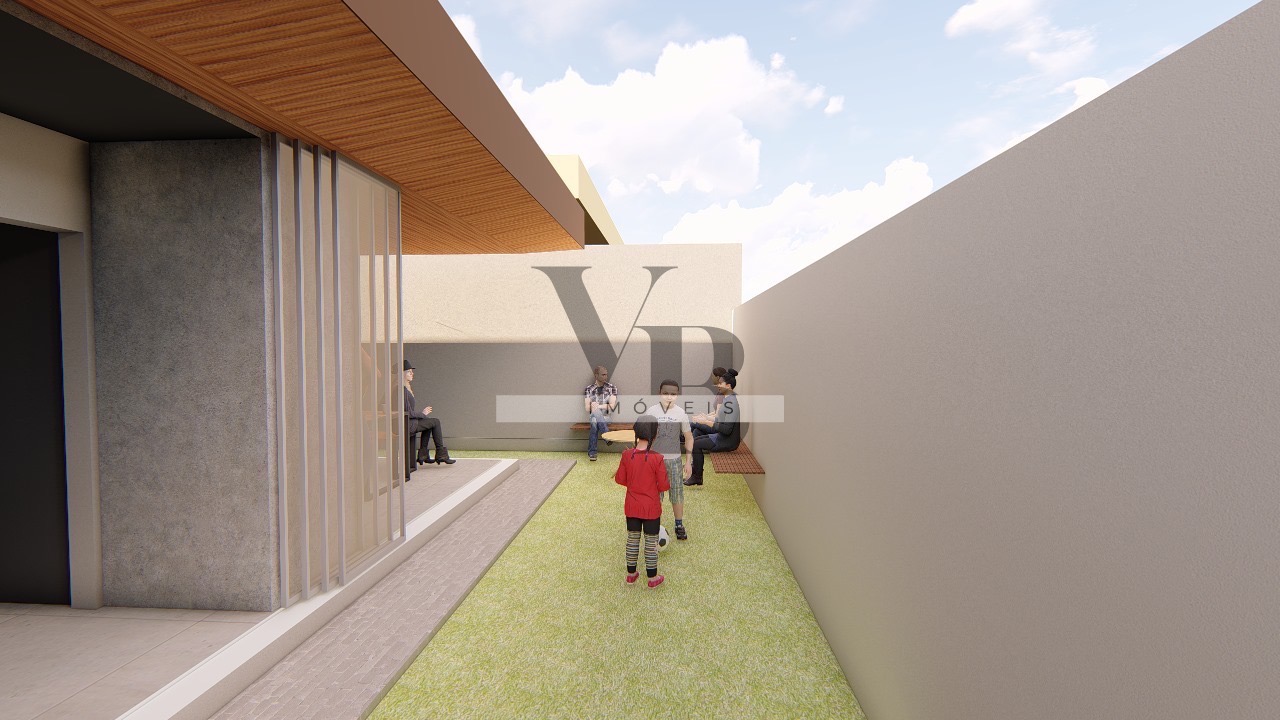 Na área externa, a varanda gourmet convida a momentos de lazer e descontração, com vista para um quintal espaçoso, que permite a personalização conforme o estilo de vida do futuro morador — seja com jardim, piscina ou espaço kids.