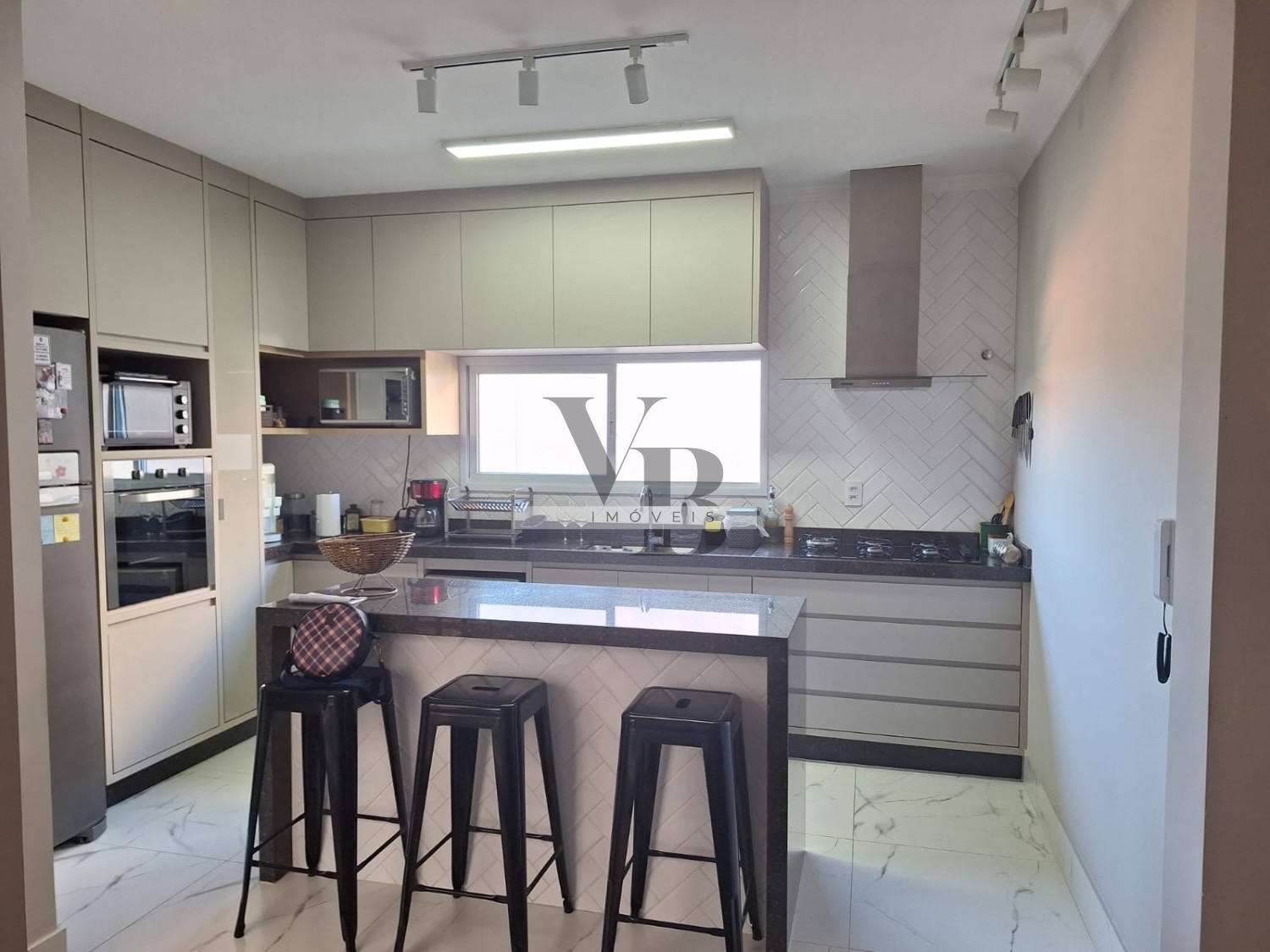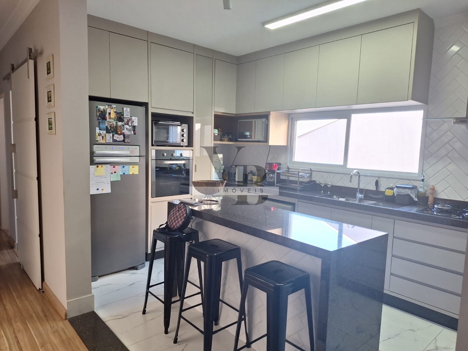 A cozinha planejada é moderna e equipada, com armários embutidos que proporcionam praticidade e organização no dia a dia. A área de serviço é funcional e bem ventilada, complementando a estrutura da casa.