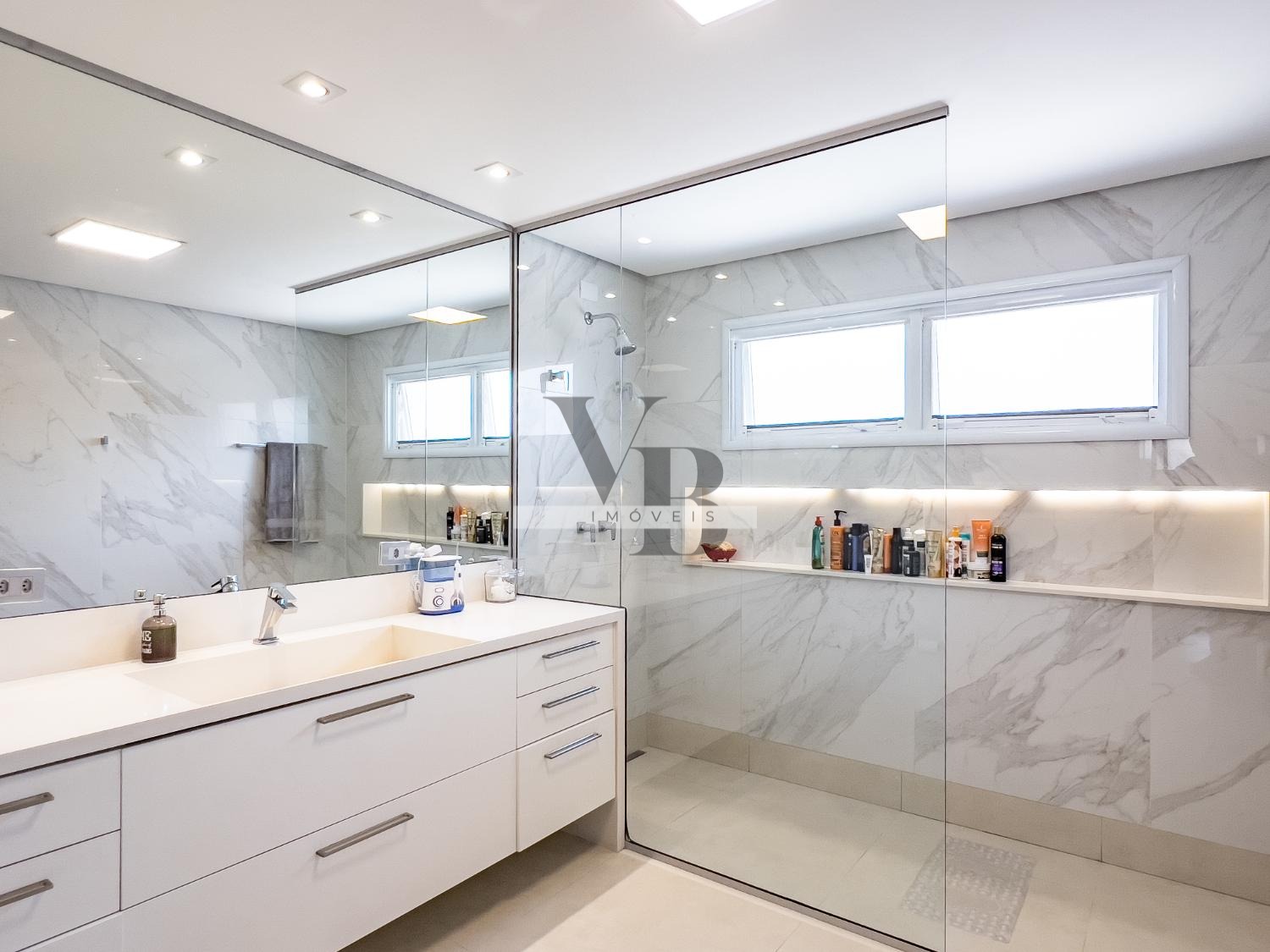 São 5 banheiros ao total, todos com excelente acabamento, em uma planta inteligente que valoriza ventilação, luminosidade e charme.