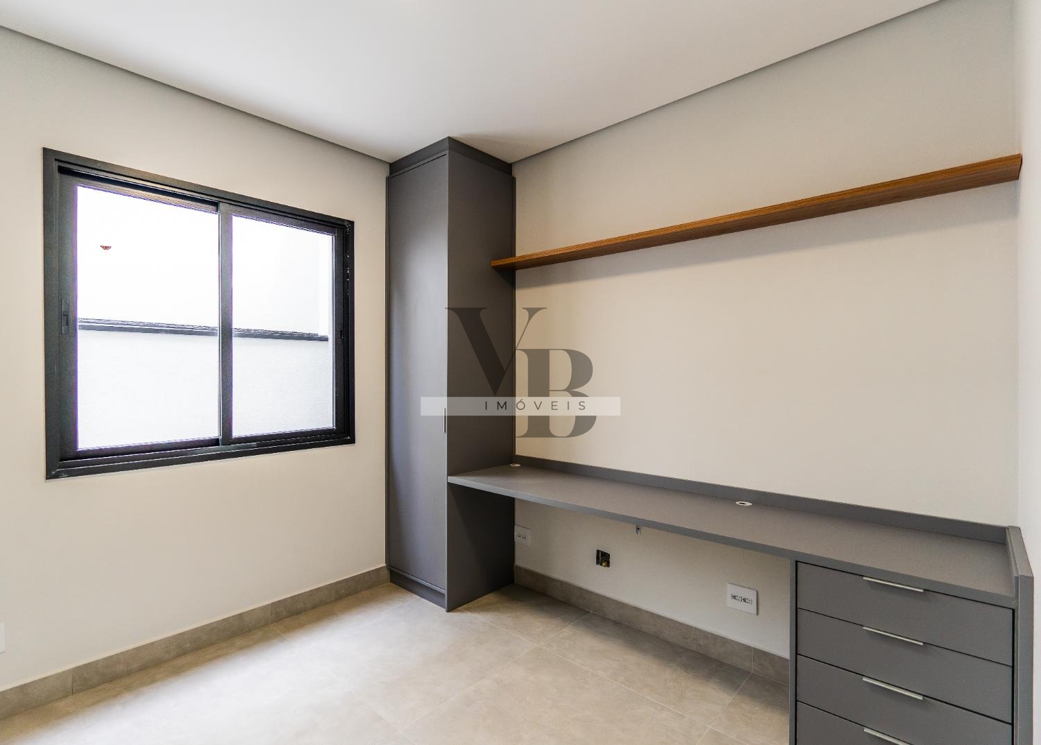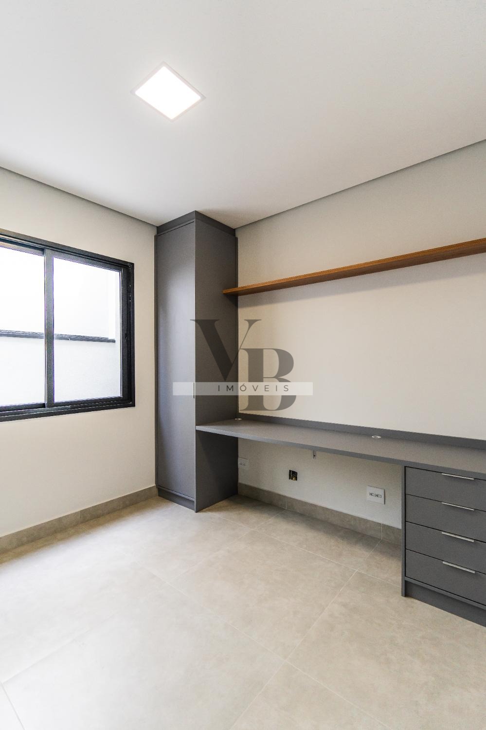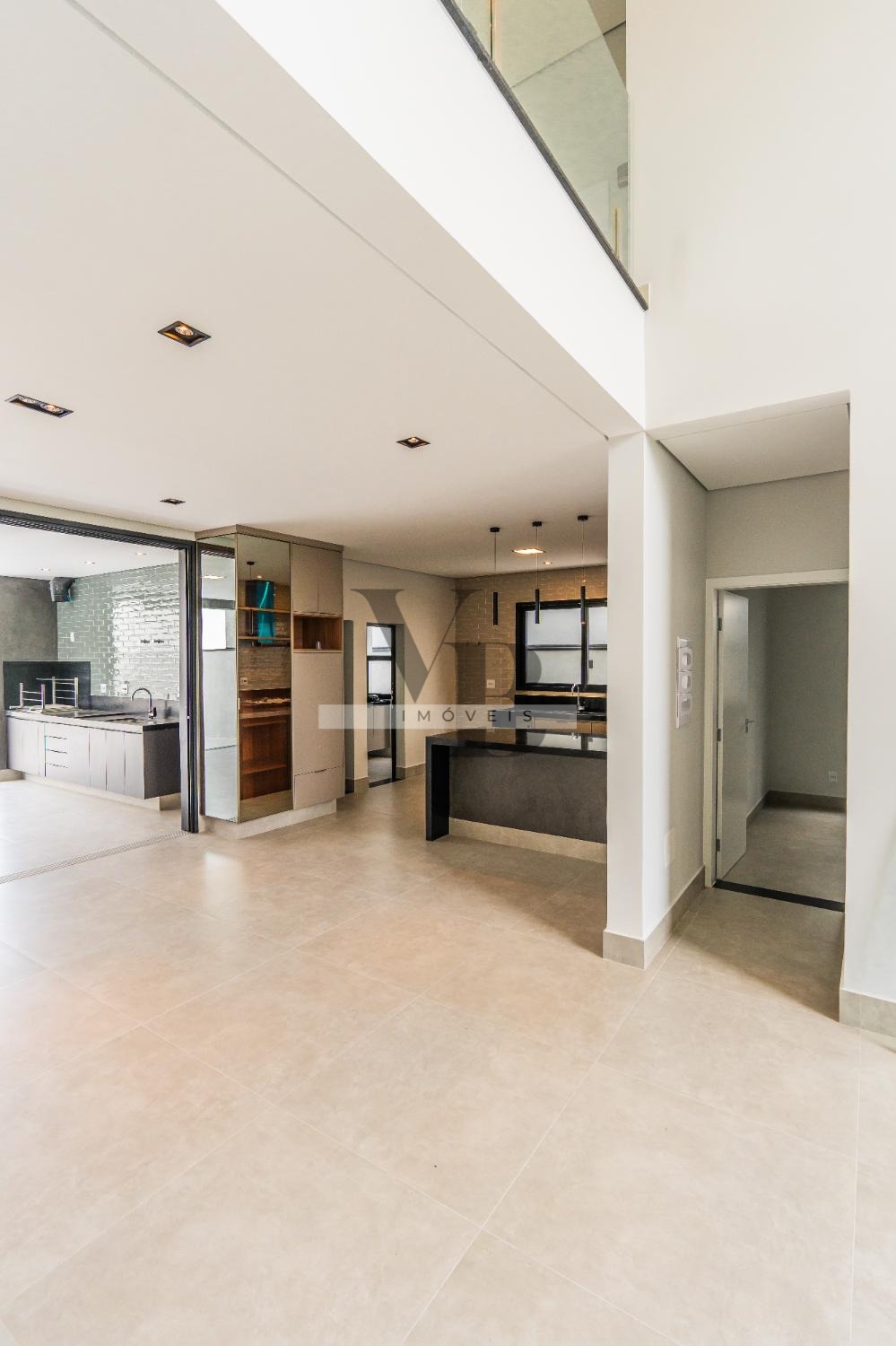 O imóvel conta com 3 suítes, sendo uma delas com closet. No pavimento superior, dispõe de hall com sala de TV. No térreo, oferece sala de estar, sala de jantar e escritório, com possibilidade de reversão para uma suíte. A cozinha é em estilo americano, integrada aos ambientes, além de despensa e lavanderia independentes.