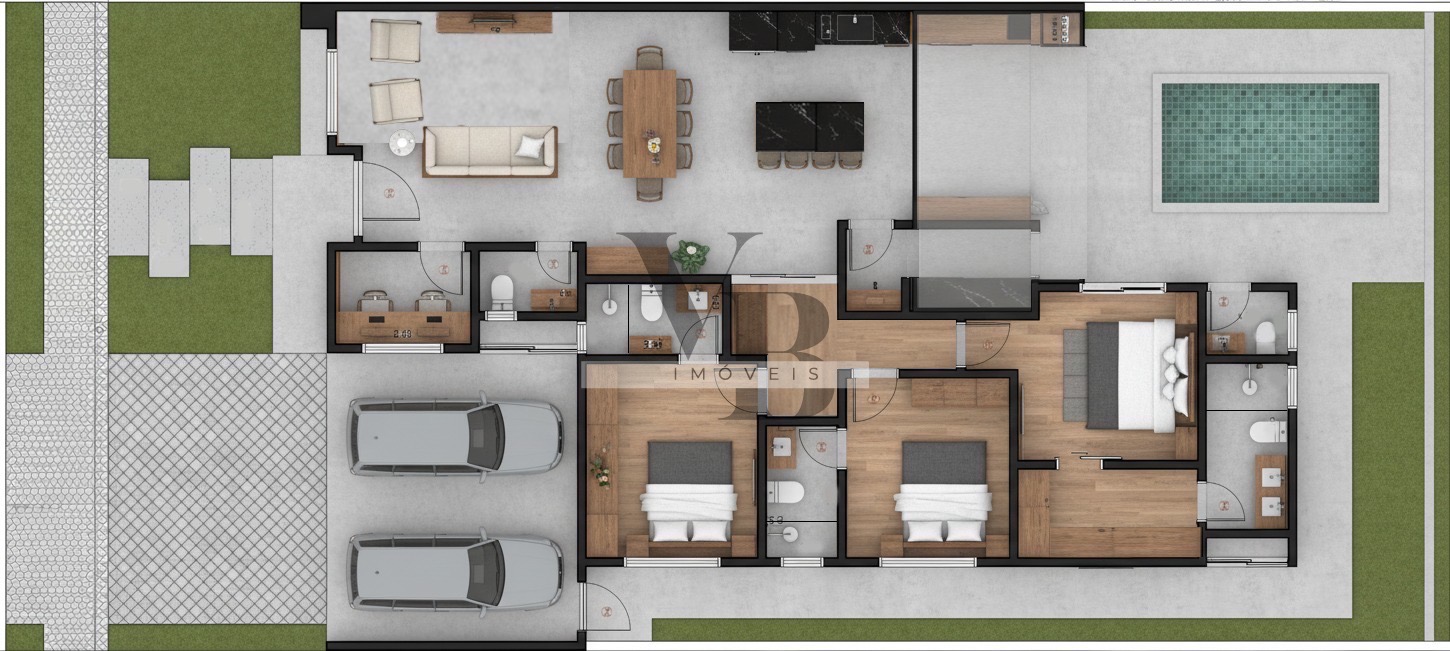 Belíssima casa térrea moderna com 03 suítes e piscina aquecida em Valinhos