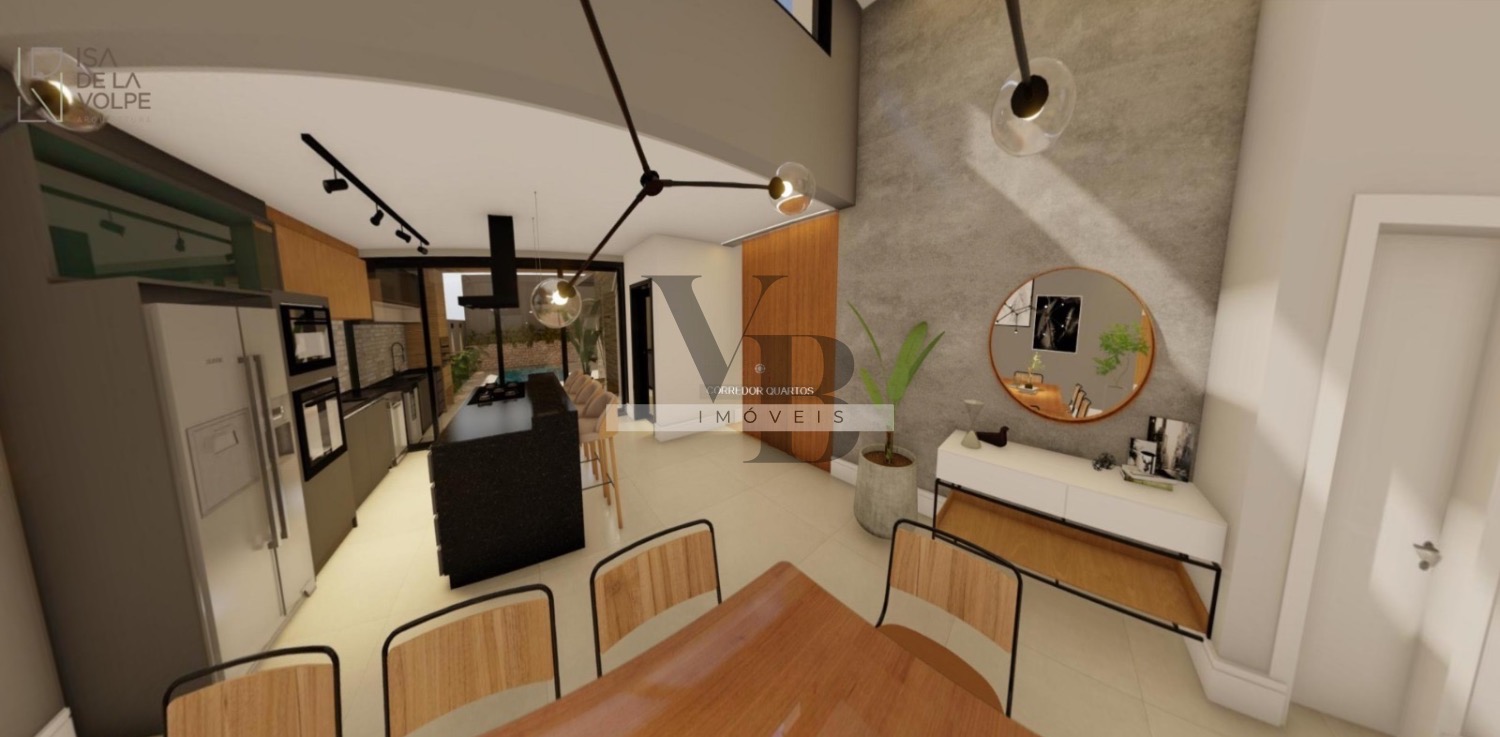 Localizada no Condomínio Bosque da Mata, esta casa térrea apresenta projeto moderno, ambientes integrados e acabamentos de alto padrão. O imóvel possui sala ampla integrada à cozinha, escritório, área de serviço com despensa e área gourmet voltada para o lazer.